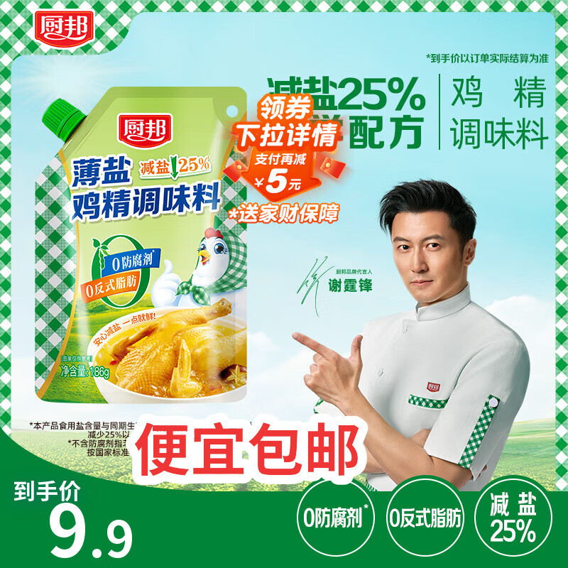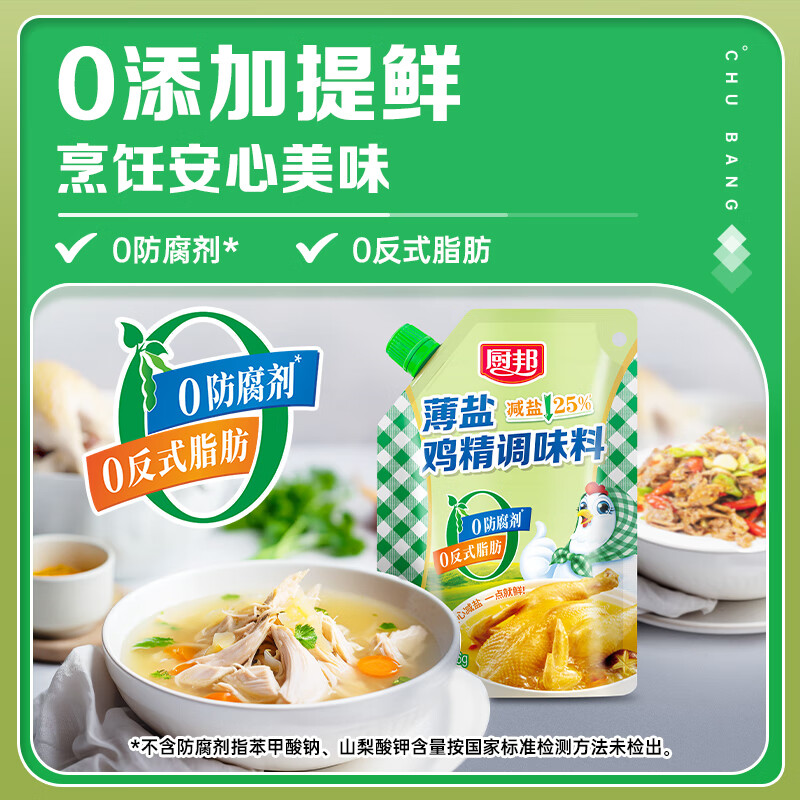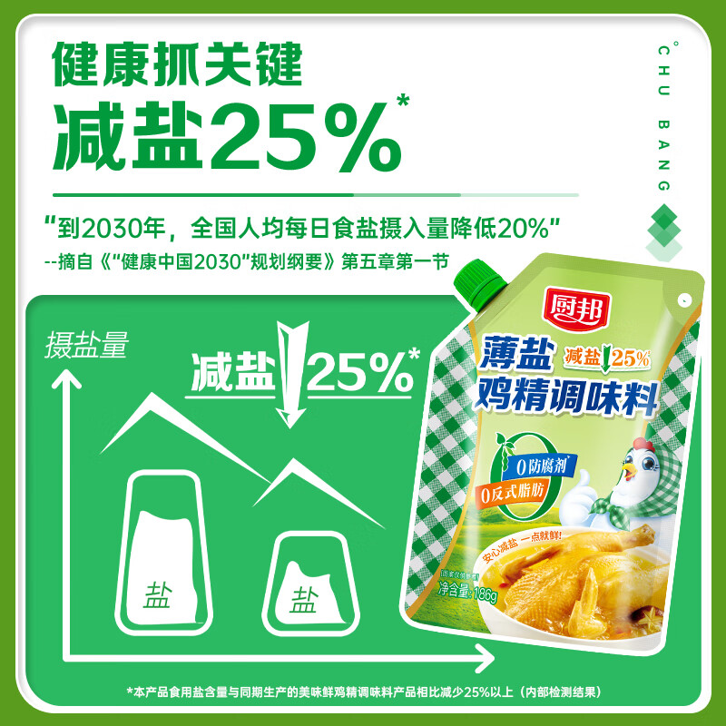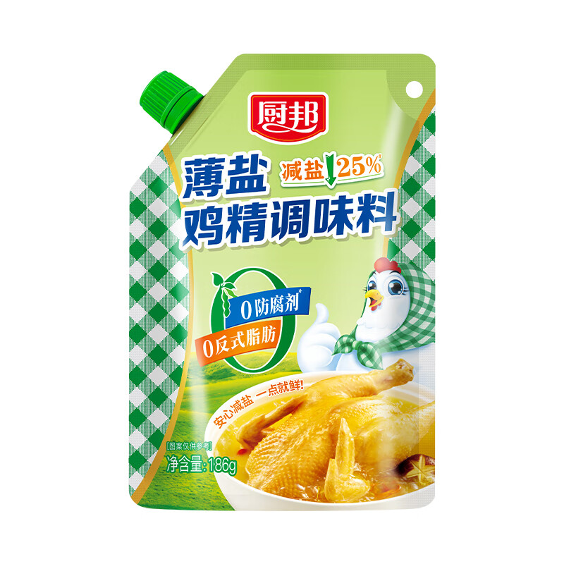 厨邦薄盐鸡精186g 带嘴装自立袋 健康薄盐提鲜增香炒菜调味料