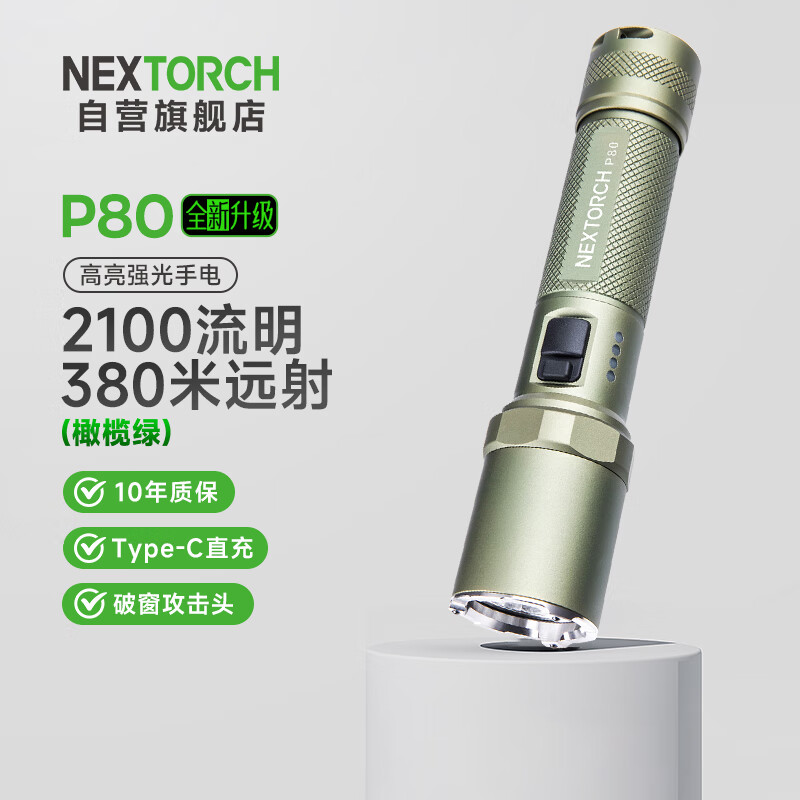 纳丽德(NEXTORCH)P80强光手电筒车载应急破窗防身手电筒安保巡逻勤务手电2100流明