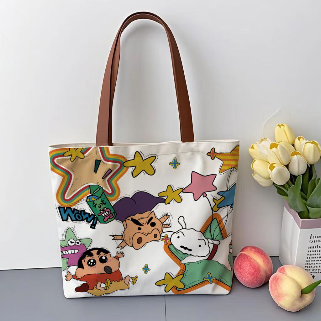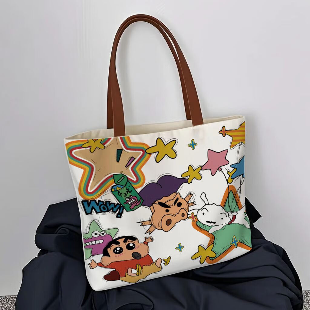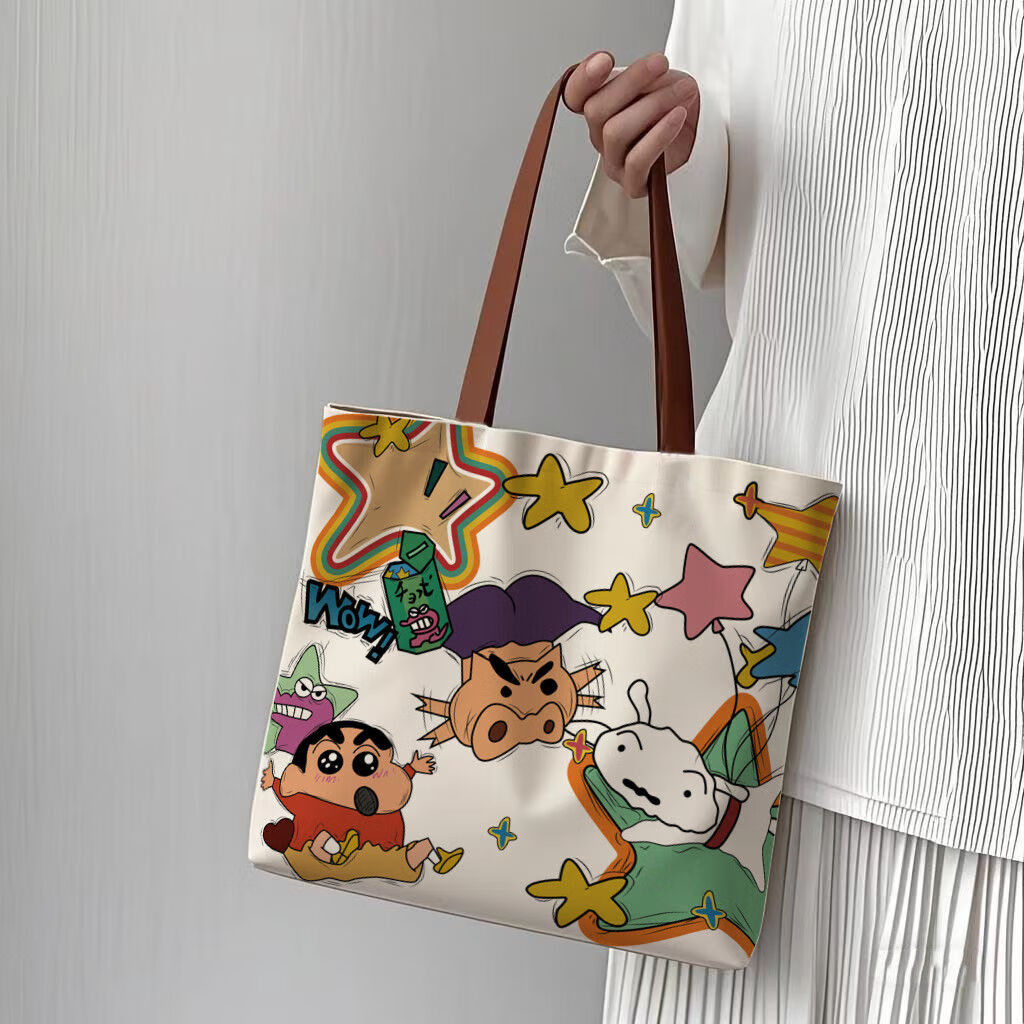 蜡笔小新卡通可爱包2025帆布包新款大容量托特学生手提袋通勤单肩 蜡笔小新和小猪【材料升级】