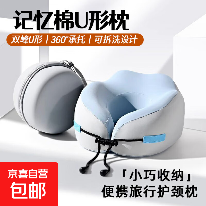 记忆棉U型枕旅行护颈枕飞机睡觉枕头脖子靠枕便携式u形汽车头枕 【天空蓝】舒适支撑 【家庭装】不带收纳