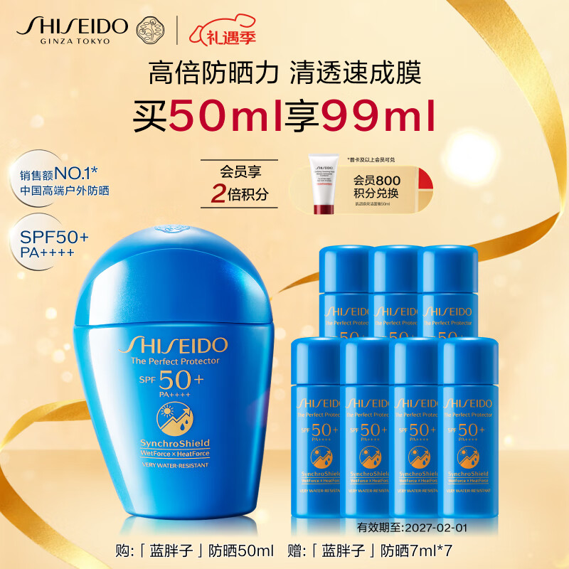 资生堂(SHISEIDO)【高端户外NO.1】新艳阳夏蓝胖子防晒霜50ml 防水防汗生日礼物女