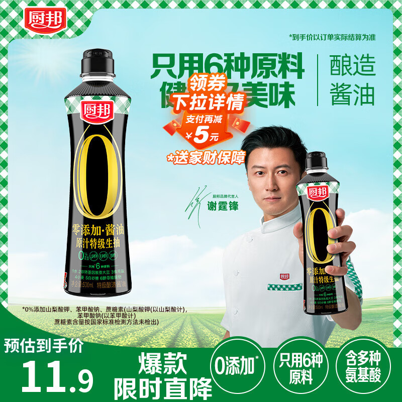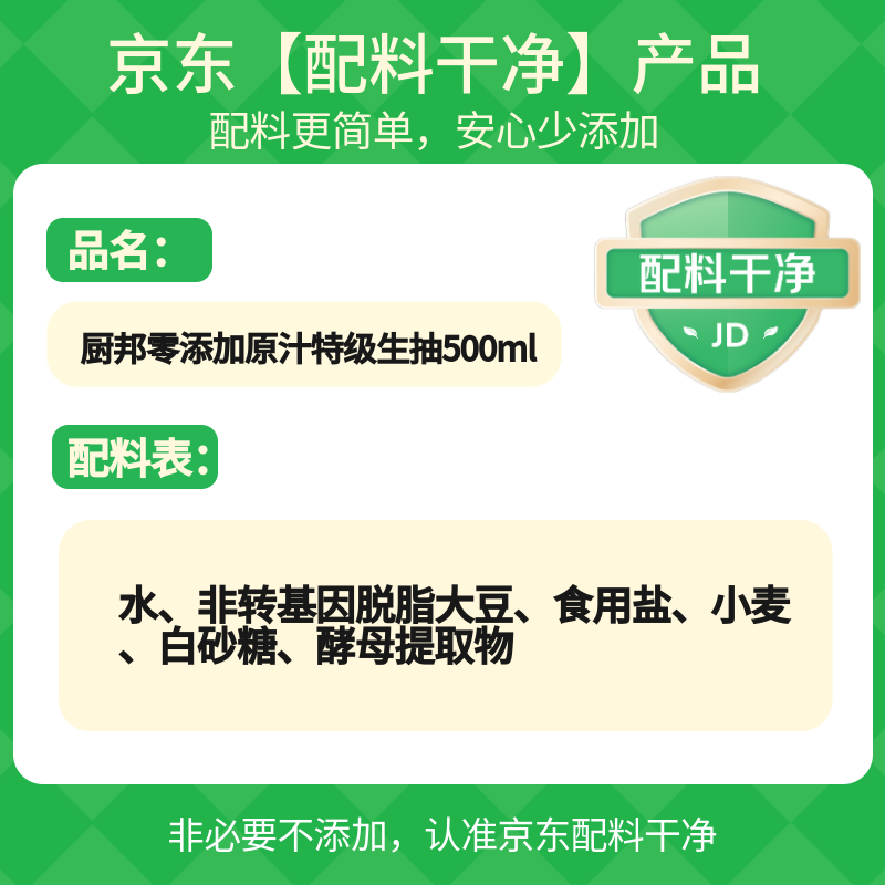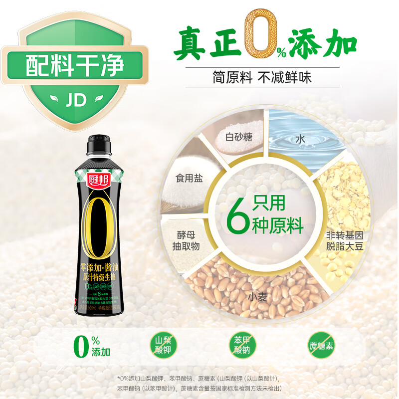 厨邦酱油 原汁生抽 【配料干净】黄豆特级酱油500ml 酿造酱油调味品