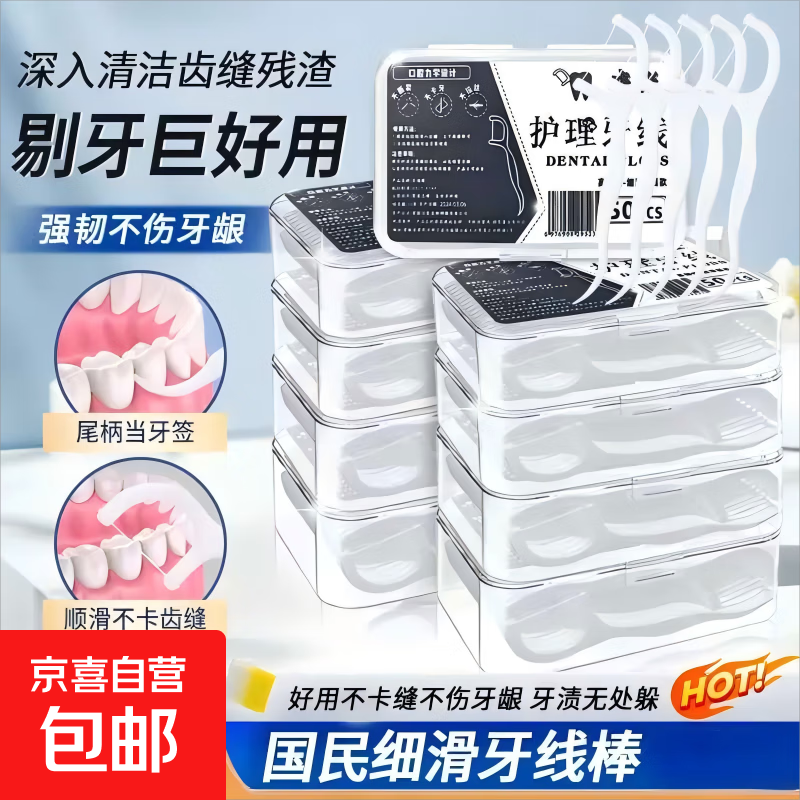京东快递盒装牙线超细家庭装牙线棒随身便携剔牙签线剔牙线牙签 盒装50支【1盒】体验装