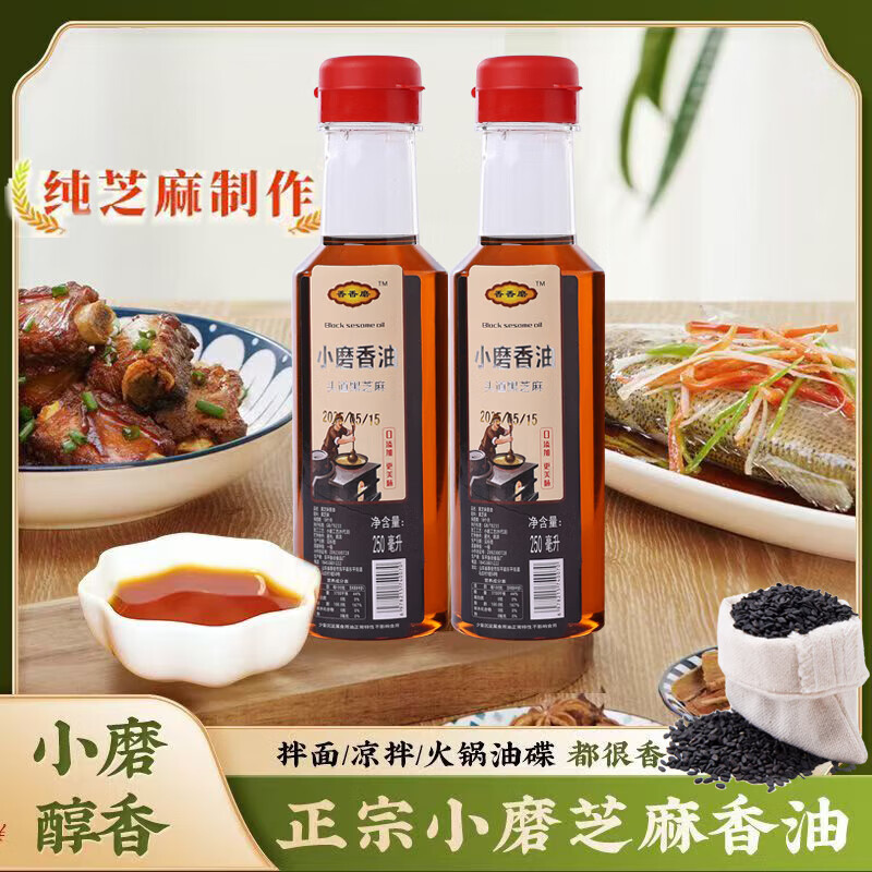 黑芝麻香油小磨香油凉拌菜火锅油碟蘸料调味油家用调料香香磨 1瓶黑芝麻香油250ml