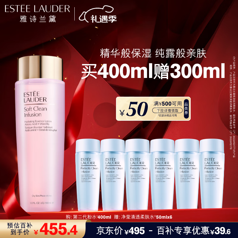 雅诗兰黛爽肤水400ml粉水化妆水补水护肤品套装化妆品礼盒圣诞礼物送女友
