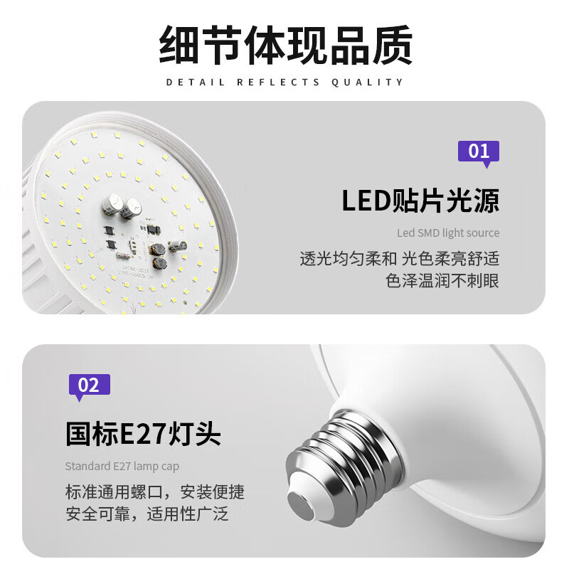 led灯泡超亮e27螺口节能灯大功率专用仓库家用球泡照明灯 5W高亮球泡1个装