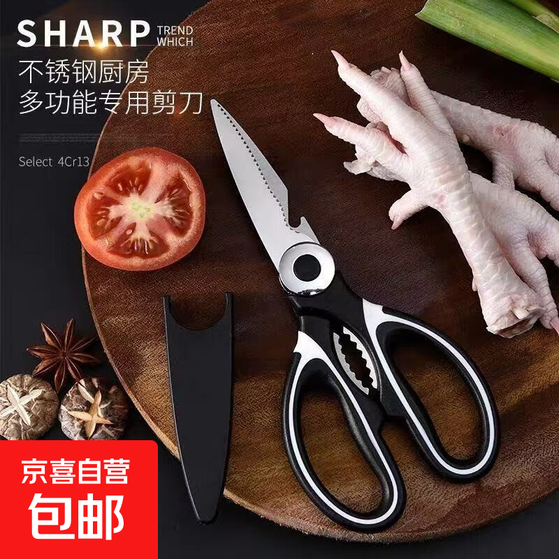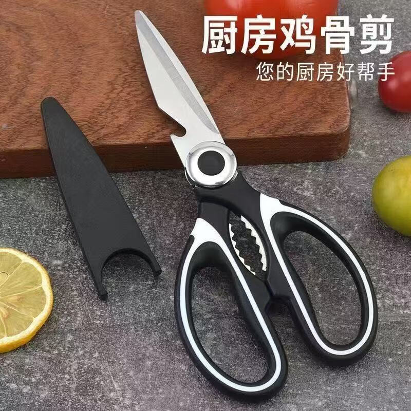 熊猫剪刀厨房剪刀家用剪刀不锈钢多功能鱼头鸡骨剪熊猫剪办公文具剪 黑色2.8mm一把