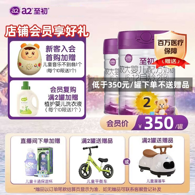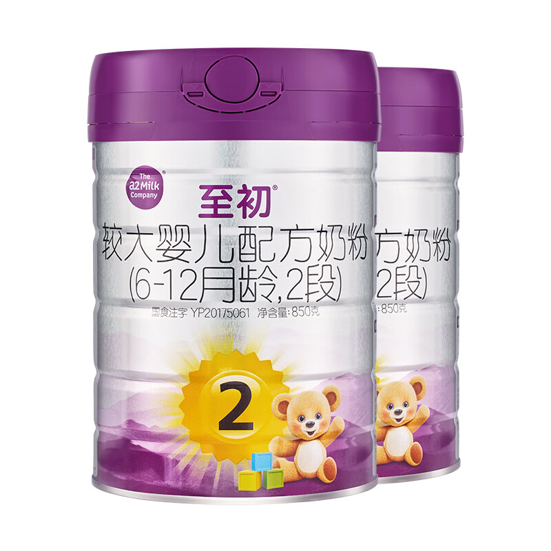 a2至初2段奶粉 较大婴儿配方奶粉 6-12月适用 850g/罐 新西兰进口 2罐装
