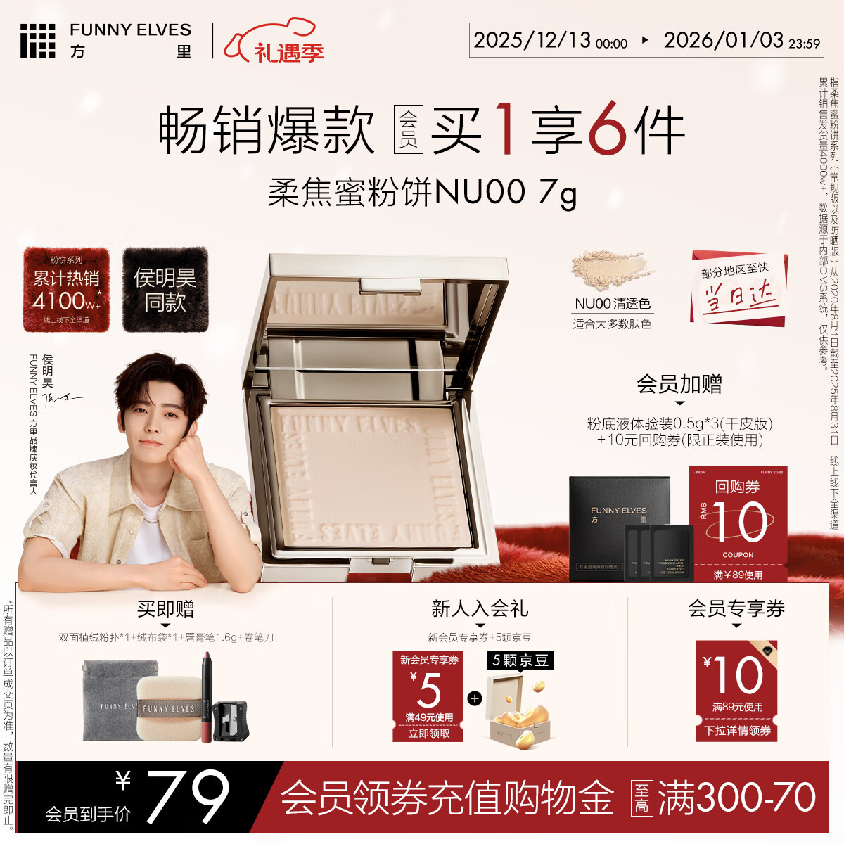 方里【圣诞礼物】柔焦蜜粉饼 清透控油补妆定妆散粉NU00 7g 送女生