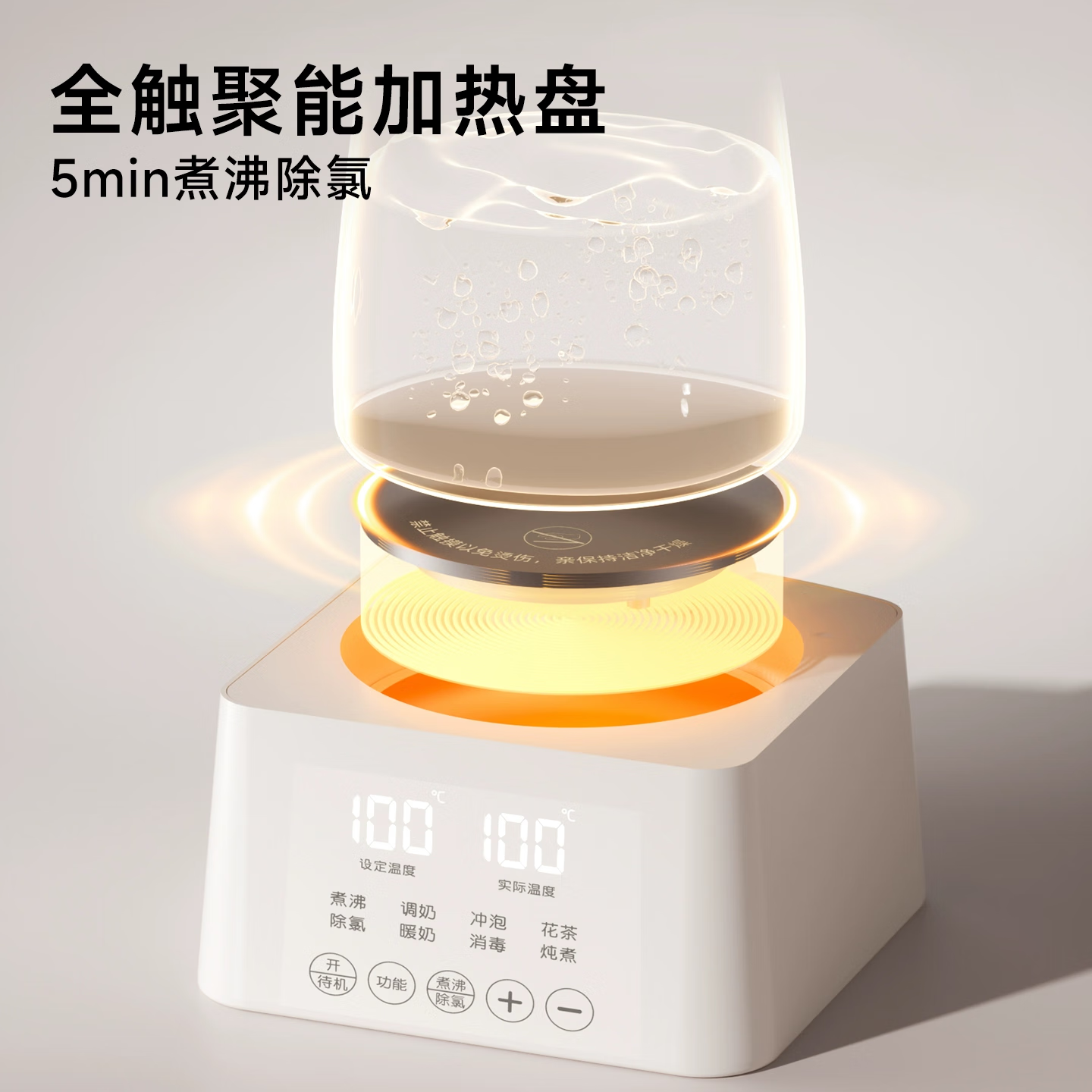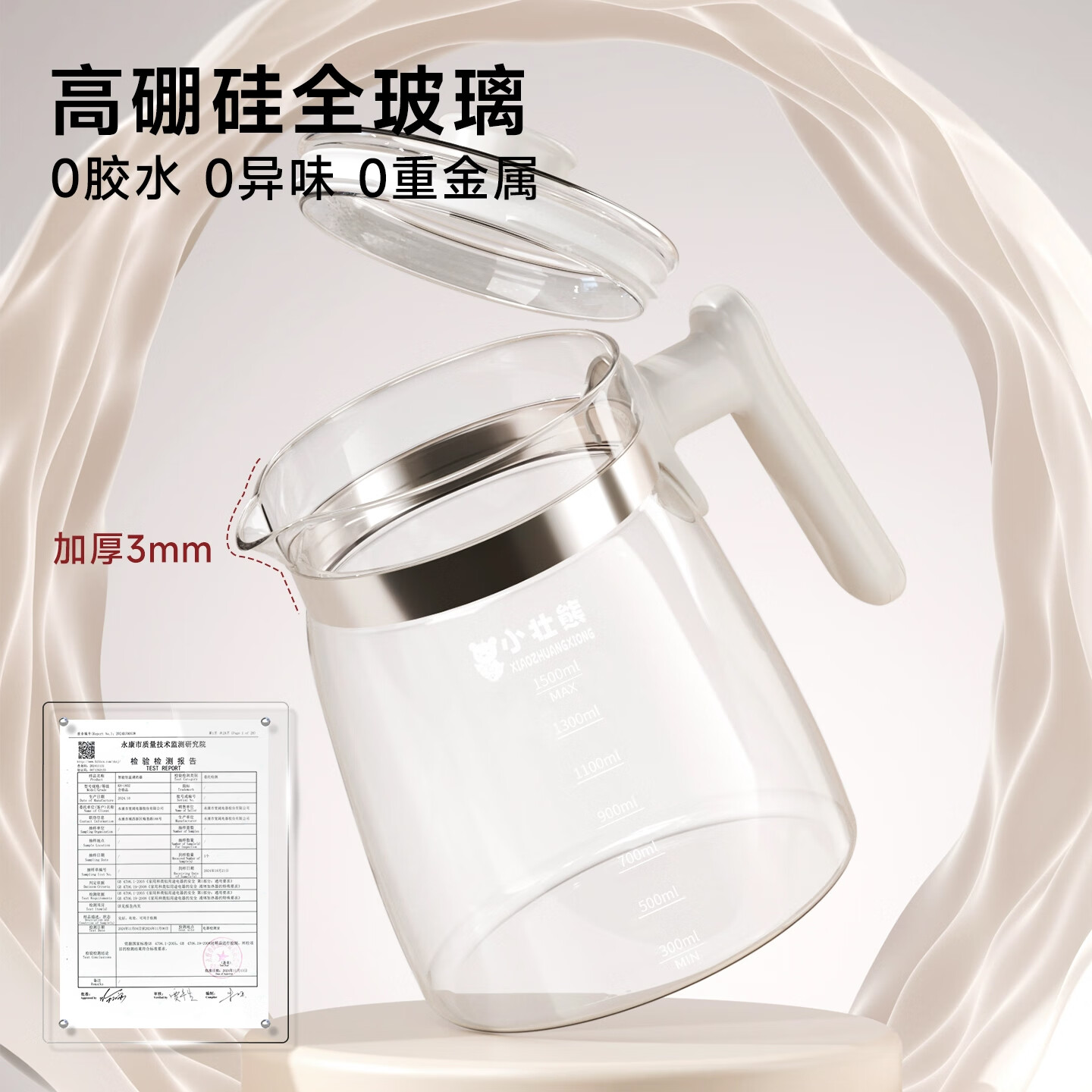 小壮熊 全玻璃恒温壶 恒温调奶器冲奶水壶 保热冲泡暖奶暖烧水壶 白1.5L