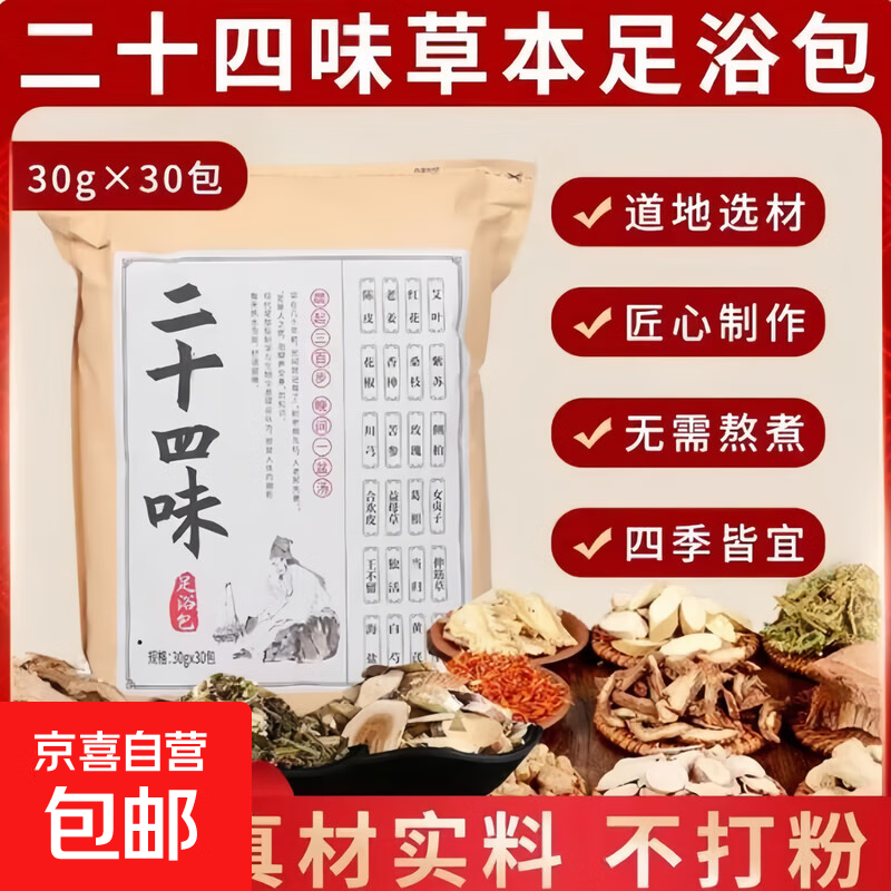 艾草生姜花椒二十四味泡脚包养生足浴中药包非祛排湿排寒秋冬保暖 【真材实料】二十四味足浴包30g*30袋/1大包