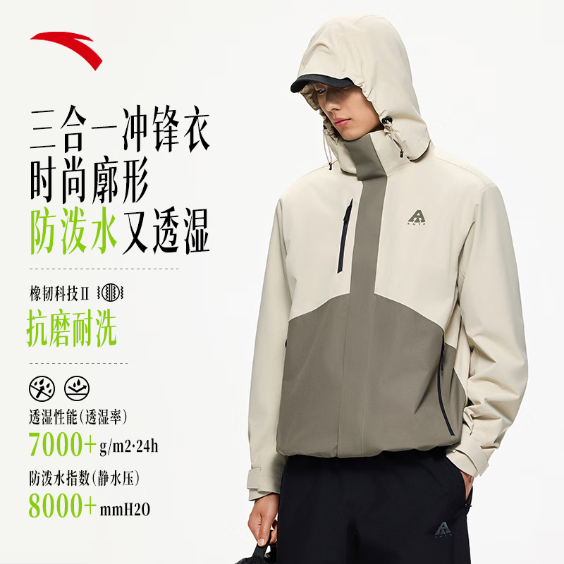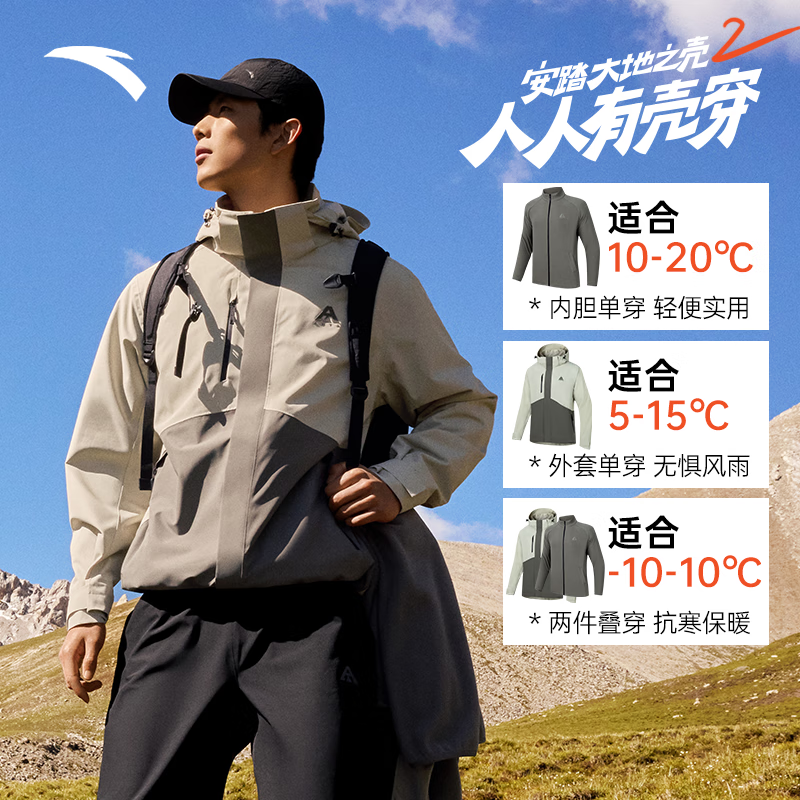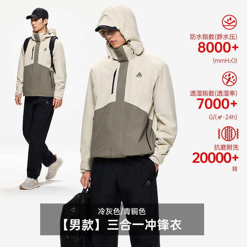 安踏王一博同款水壳三合一冲锋衣秋冬季男女户外登山服两件套硬壳外套 【水壳2.0三合一】6601冷青铜-4 L (男175/女170)