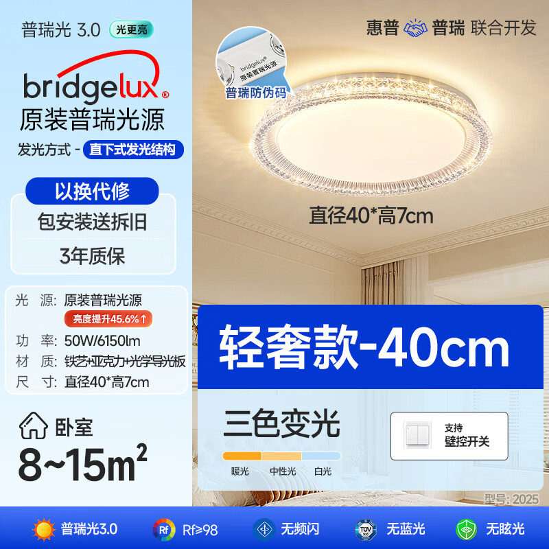 惠普轻奢风led普瑞护眼吸顶灯卧室灯大气欧式水晶灯中山灯具包安装