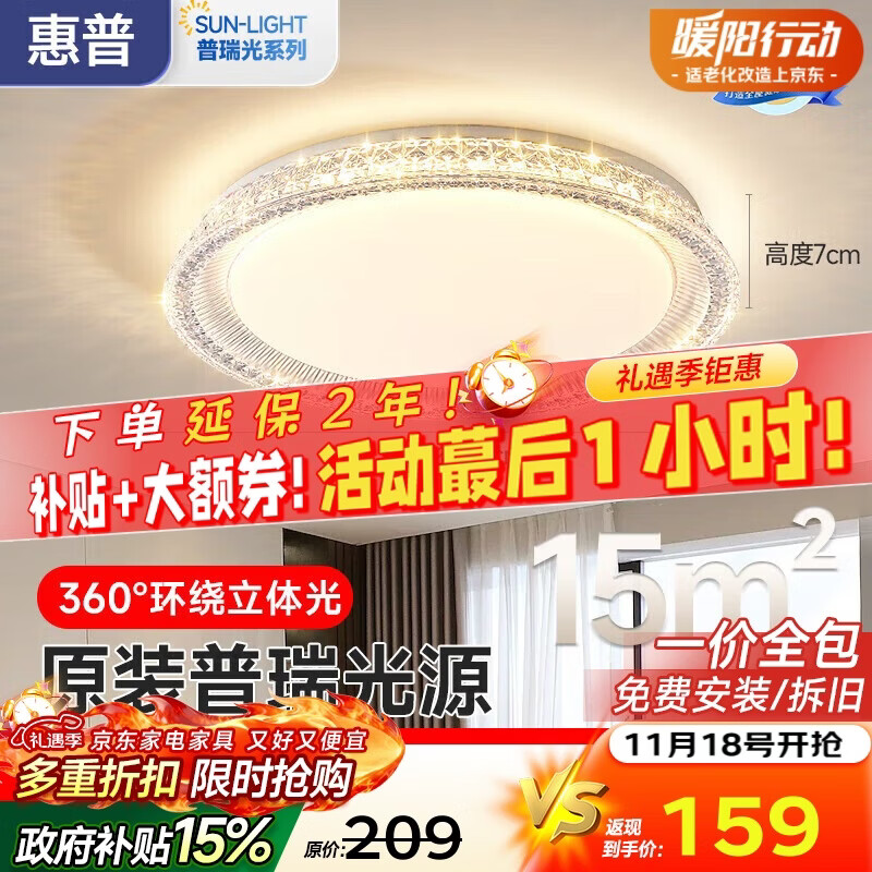 今日推荐:惠普轻奢风led普瑞护眼吸顶灯卧室灯大气欧式水晶灯中山灯具包安装