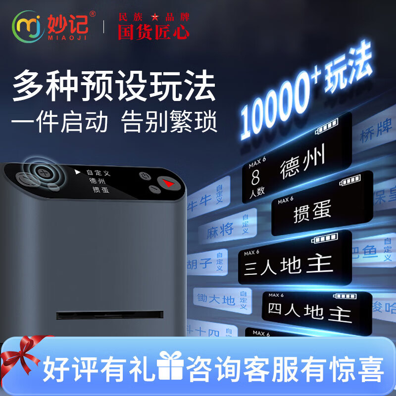 妙记掼蛋专用发牌机洗发一体免洗牌全自动发牌器参数可调黑色MJ8575
