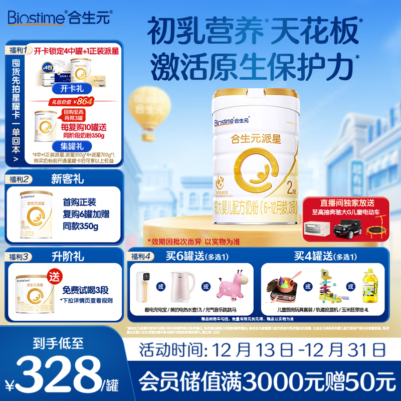 合生元(BIOSTIME)派星 较大婴儿配方奶粉 2段(6-12个月) 新国标 800g