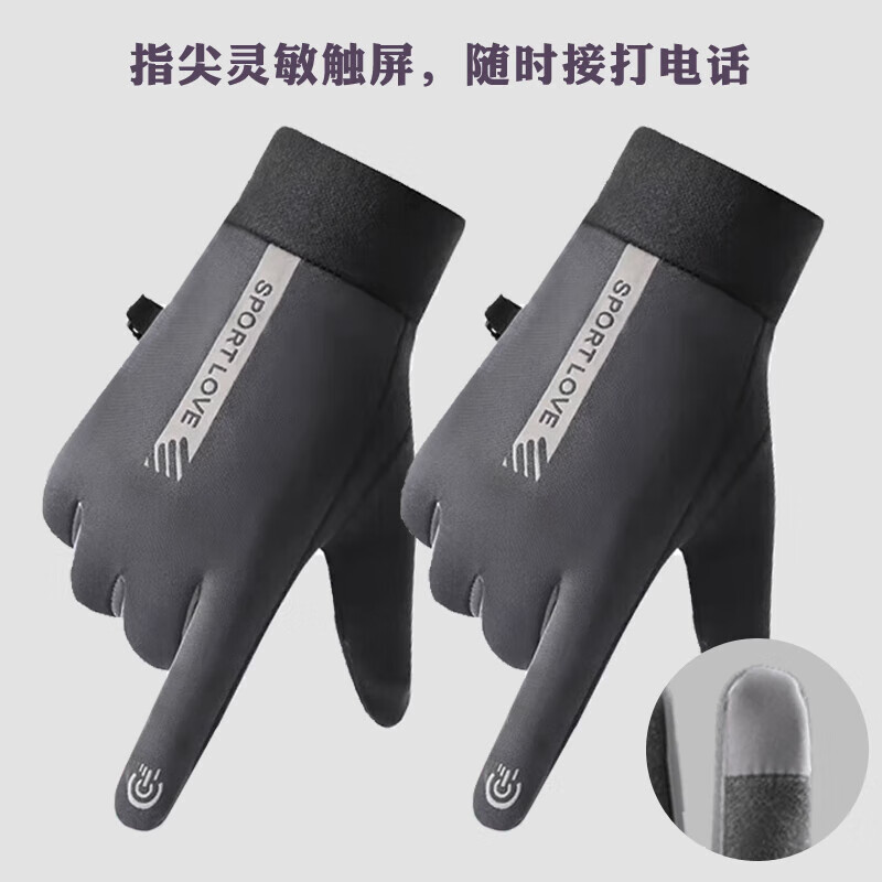 【京东物流】手套男士冬季加绒骑行电动车防滑触屏开车保暖手套女 【掌心防滑 可触屏】女士灰色 均码 1双 掌围女17-21男18-23cm
