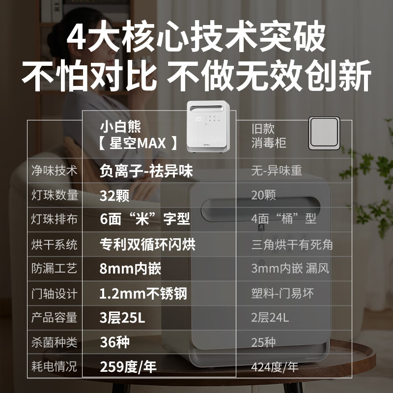 小白熊SnowBear消毒柜婴儿 奶瓶消毒烘干一体机紫外线32颗灯珠负离子25L-2027MAX