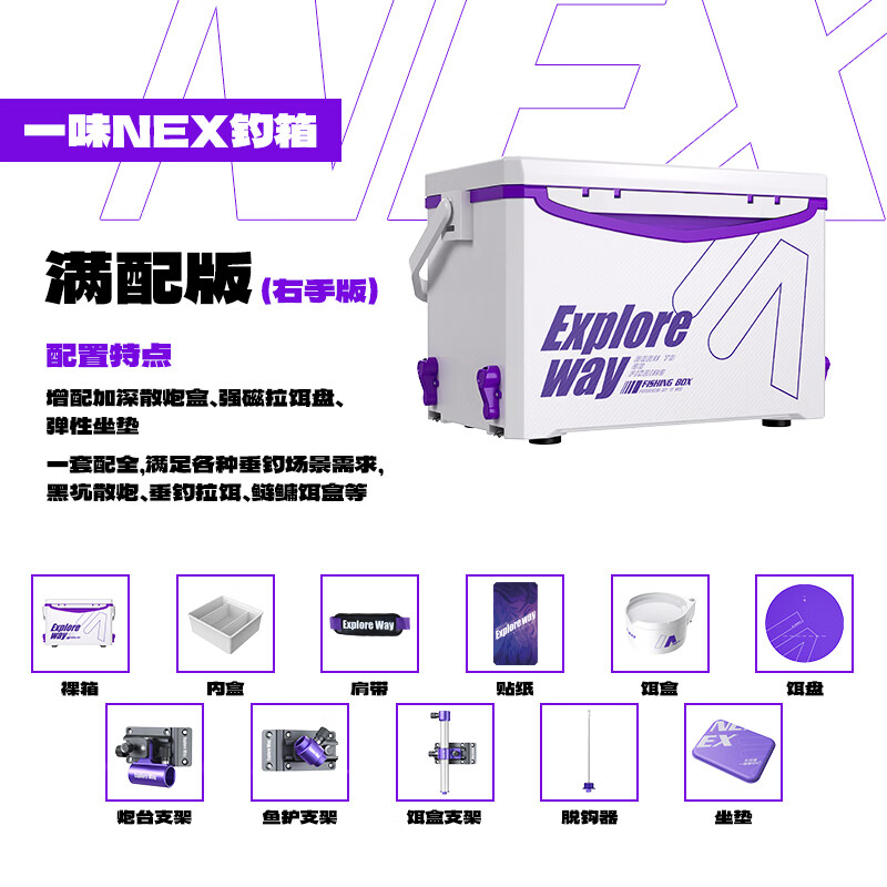 一味化氏NEX钓箱全套 聚氨酯加厚四脚升降钓鱼箱桶钓鱼装备小钓箱 26.9L 满配版-右手版【增配饵盒、坐垫】