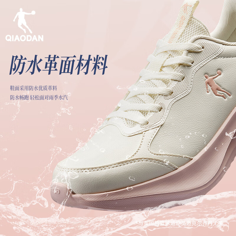乔丹运动鞋女革面防水跑步鞋减震潮流休闲鞋子皮面软底慢跑鞋妈妈鞋