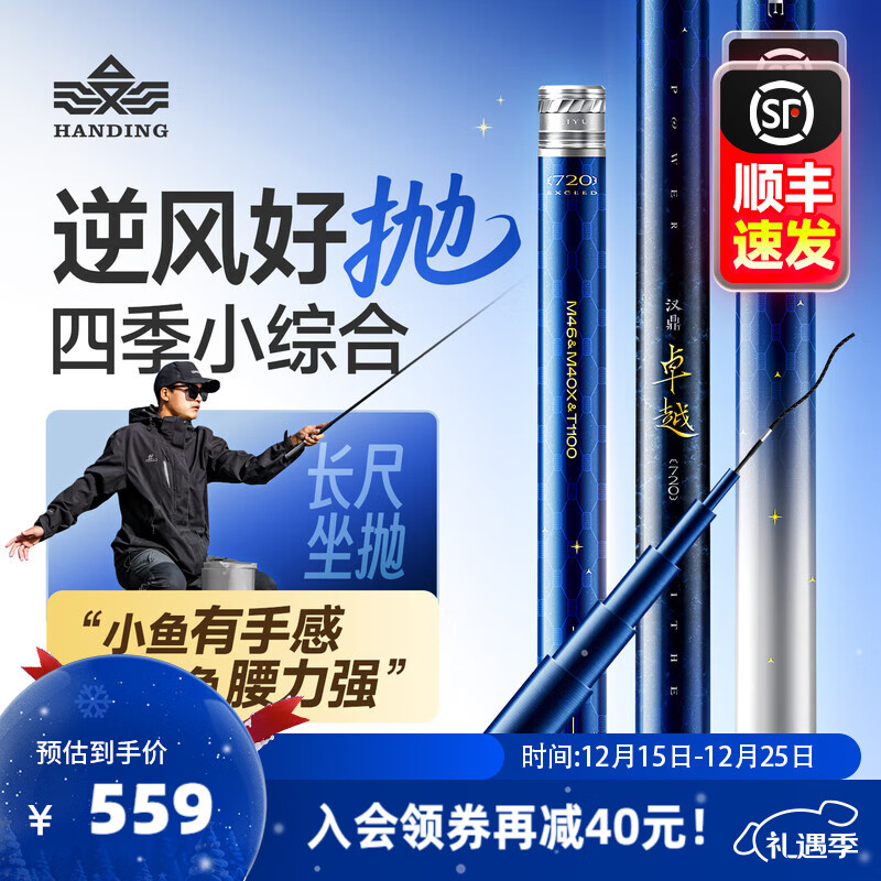 汉鼎卓越四季小综合竿碳素钓竿硬挺手竿杆轻硬超硬钓鱼钓竿鱼竿台钓竿 7.2m 【卓越,四季小综合】