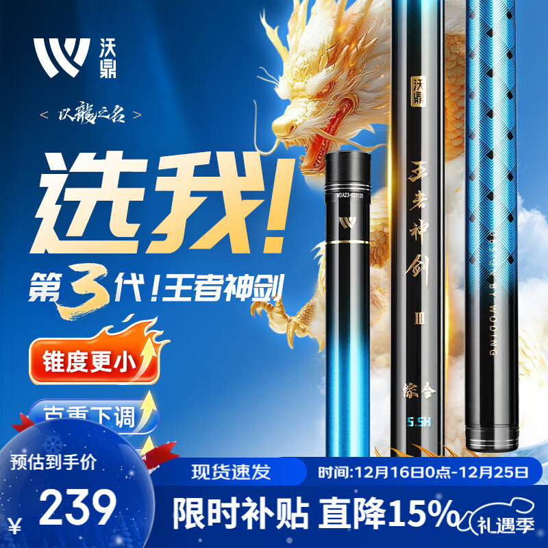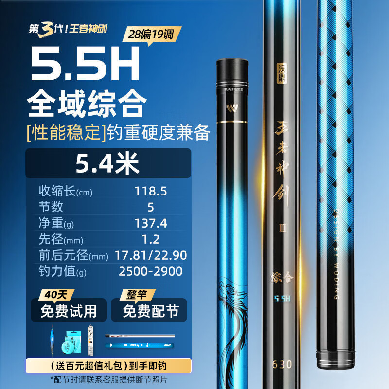 沃鼎王者神剑三代钓鱼竿碳纤维超轻鲫鱼竿大物竿鱼杆台钓竿5.4米 5.5H
