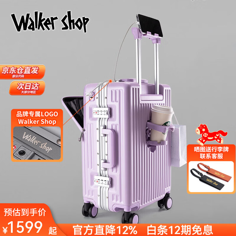Walker Shop轻奢品牌行李箱铝框登机箱男前开盖多功能拉杆箱密码旅行箱 紫色 26英寸