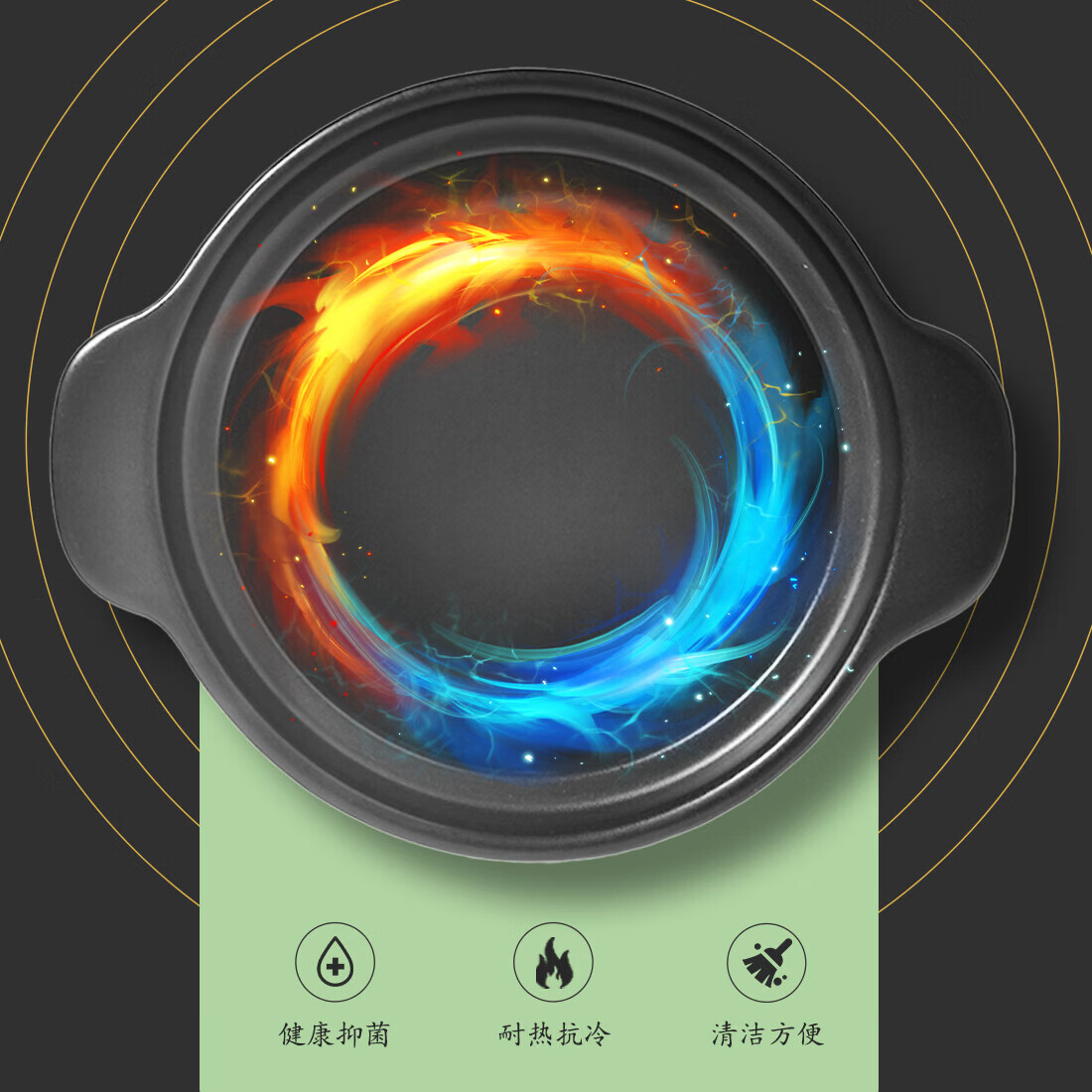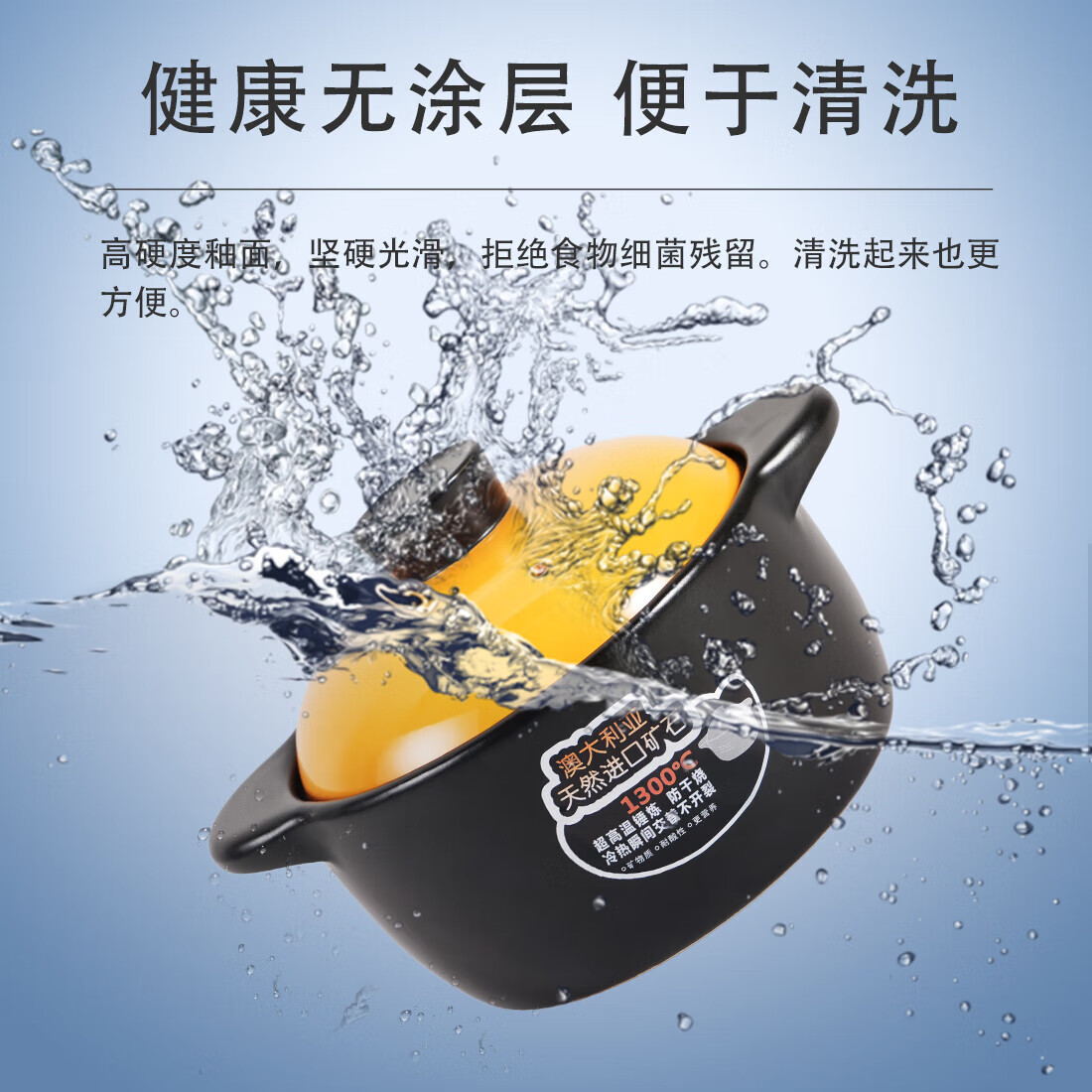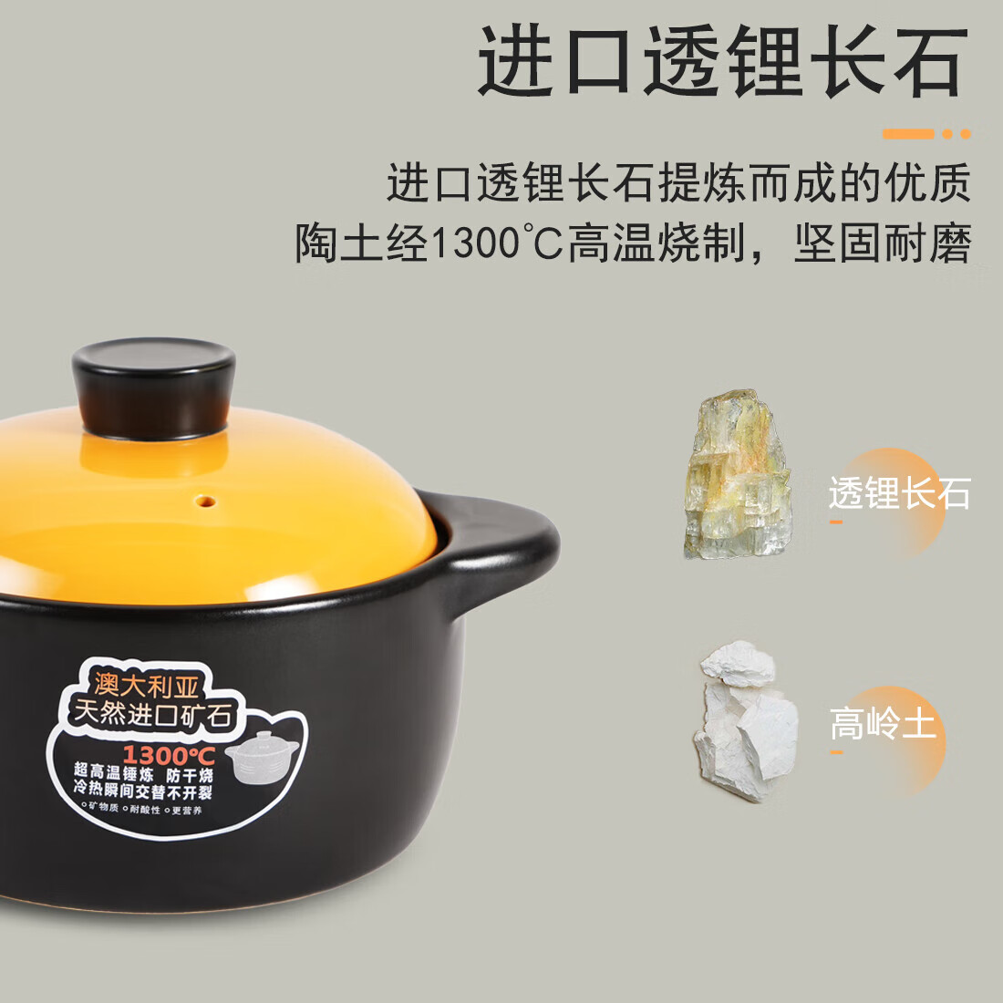 康巴赫同厂砂锅煲仔饭小炖锅耐高温不开裂燃气灶陶瓷锅汤锅 黑锅橙盖 1.7L