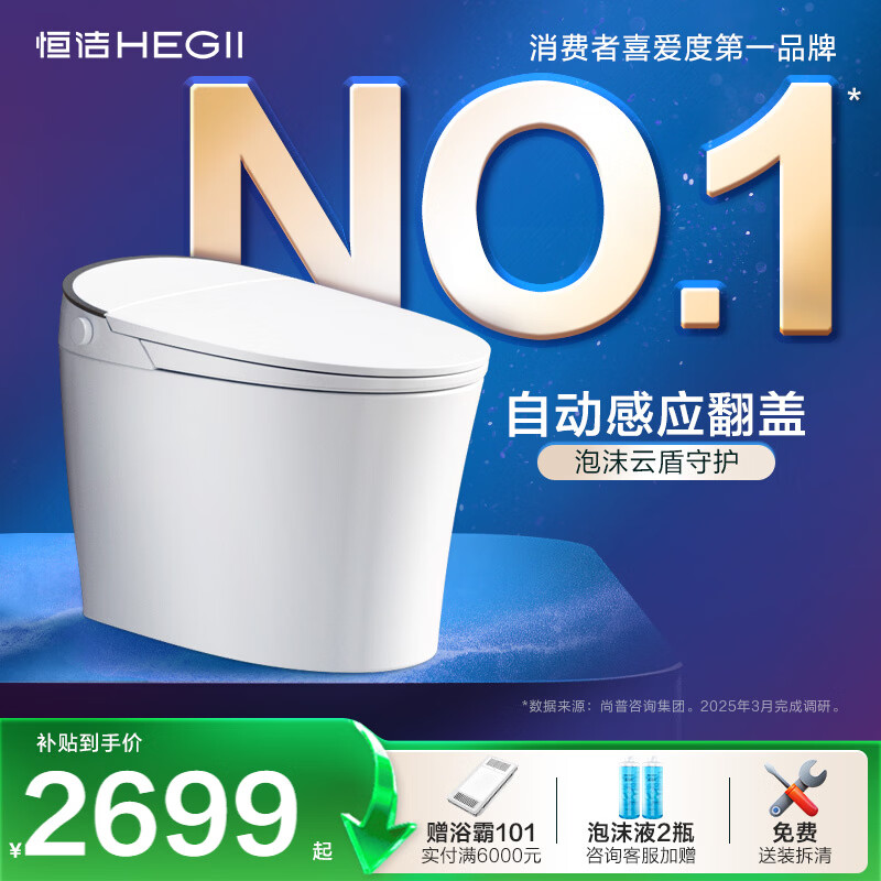 恒洁(HEGII)云卫士智能马桶H36Max免触自动翻盖泡沫盾脚感冲水DCE716C-305