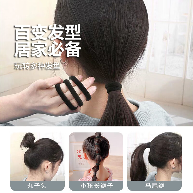 【强拉不断】高弹力耐用ins马尾无接缝皮筋扎头发简约发圈头绳 黑色60根
