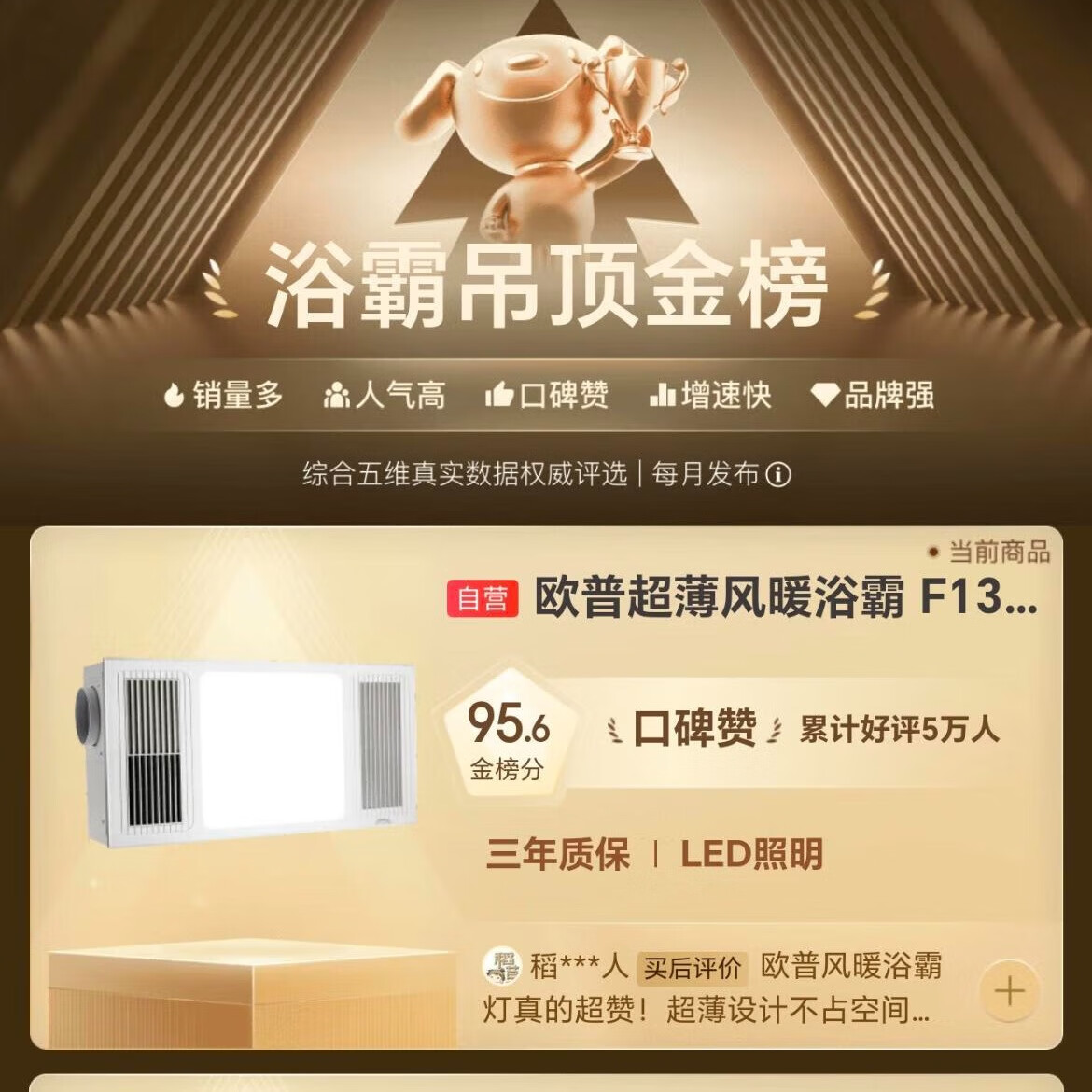 欧普(OPPLE)风暖浴霸灯超薄浴室取暖卫生间照明排气一体暖风机集成吊顶F132-A