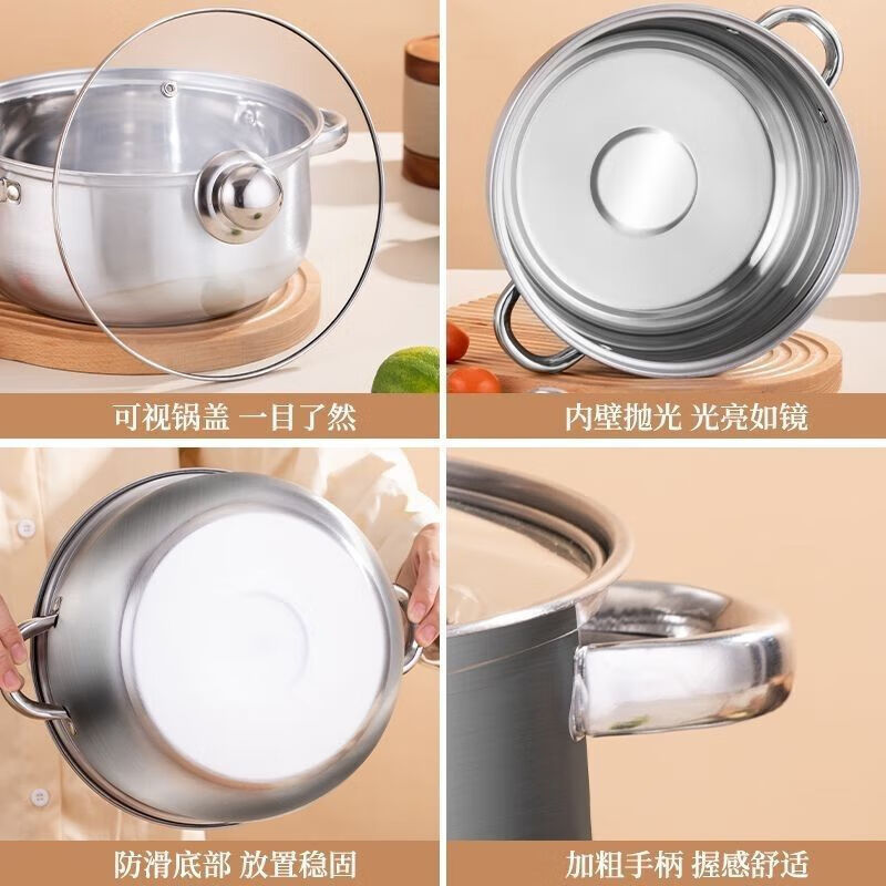 【加高】不锈钢汤锅加厚家用加高煲汤大容量煮粥炖锅 加高:加大【24cm】汤锅+玻璃盖