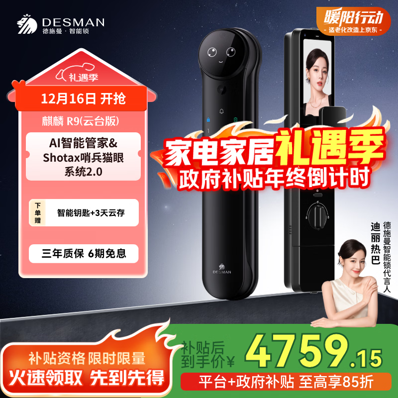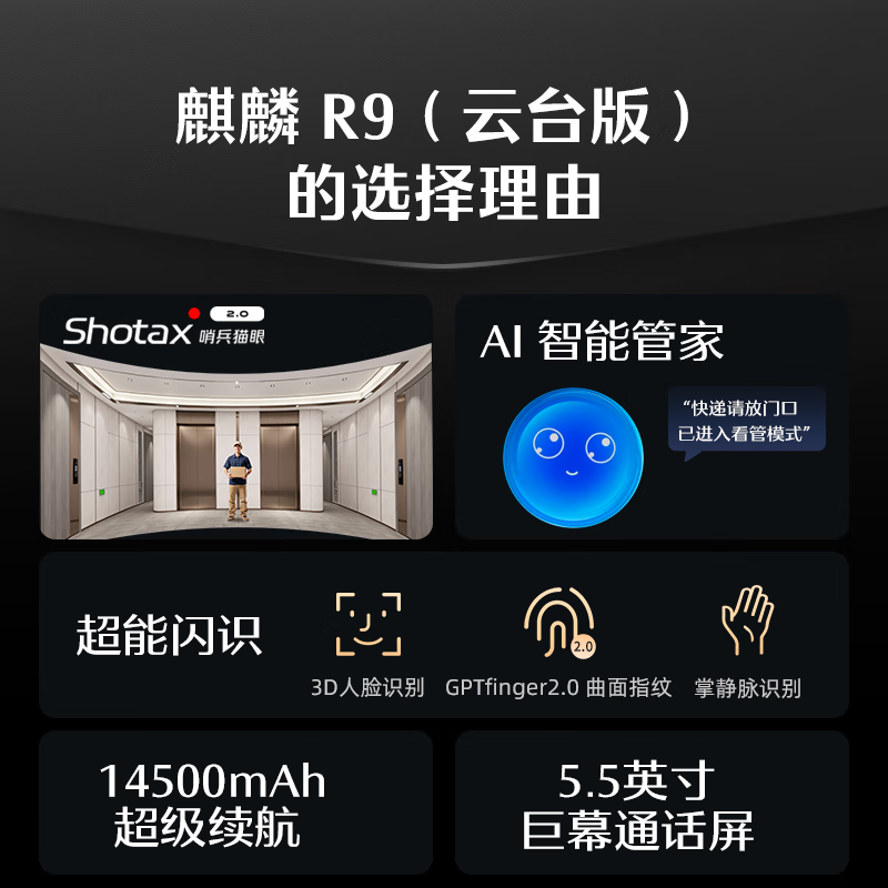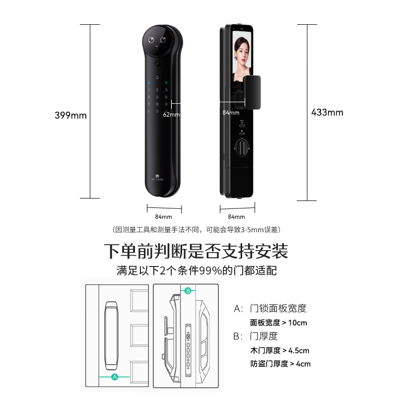 德施曼(DESMAN)智能门锁人脸掌静脉识别可视猫眼双屏Ai智能麒麟R9(云台版)
