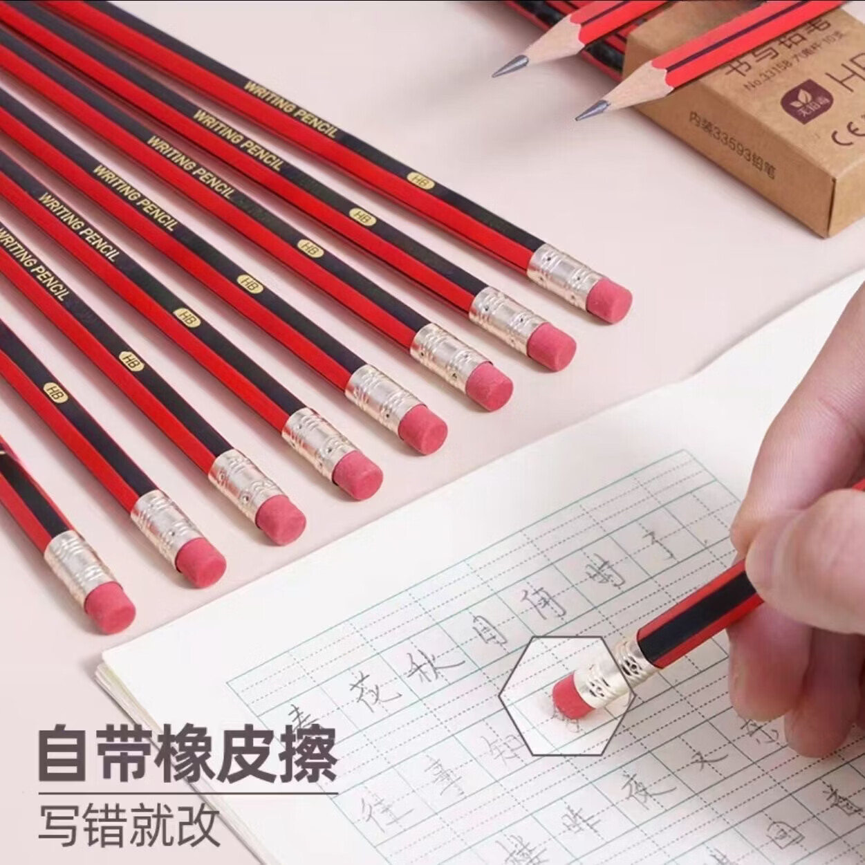 HB铅笔红杆铅笔儿童素描原木铅笔美术铅笔 学生幼儿园绿杆铅笔铅笔散装原木铅笔 红杆铅笔20支