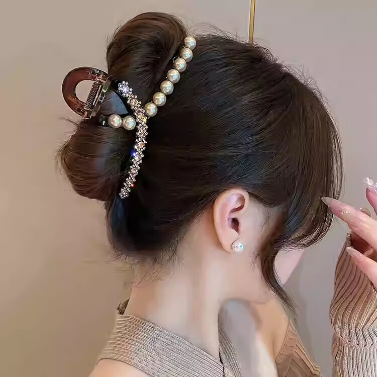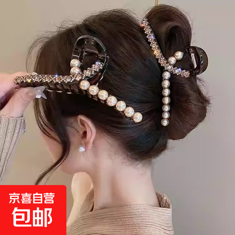 2026新款高级感大号抓夹轻奢百搭鲨鱼夹后脑勺盘发夹发卡韩版 轻奢款闪钻强抓力抓夹13CM