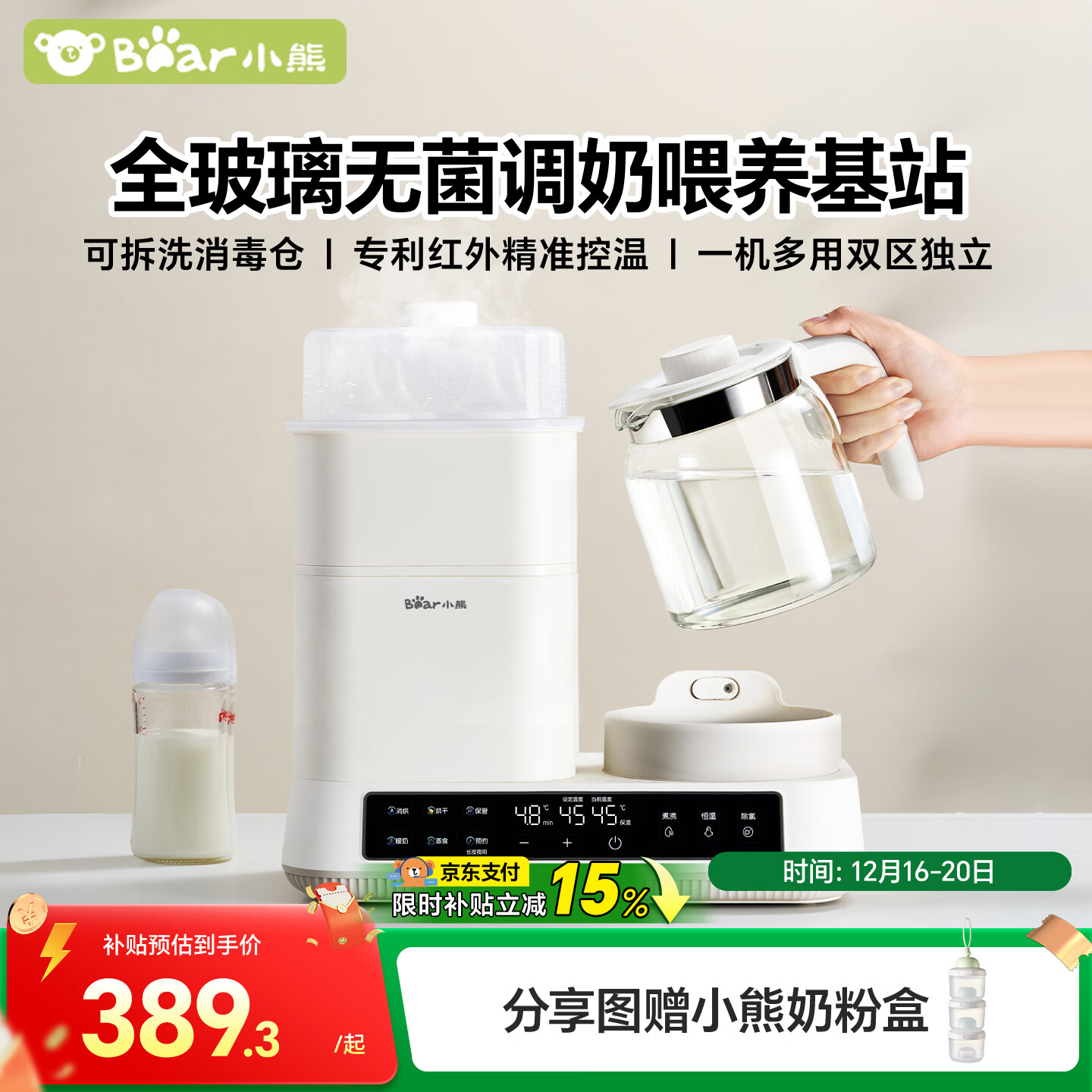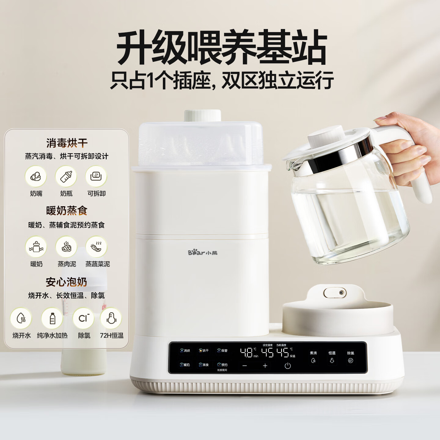 小熊(Bear)全玻璃恒温壶二合一 消毒调奶一体机 奶瓶消毒带烘干1.2L热门商品