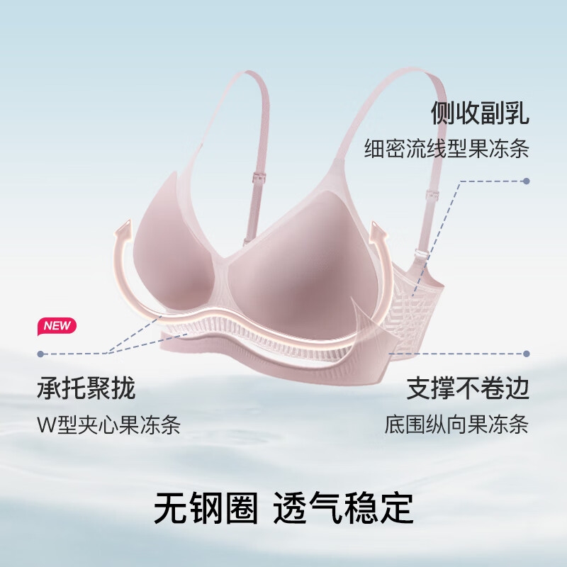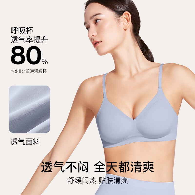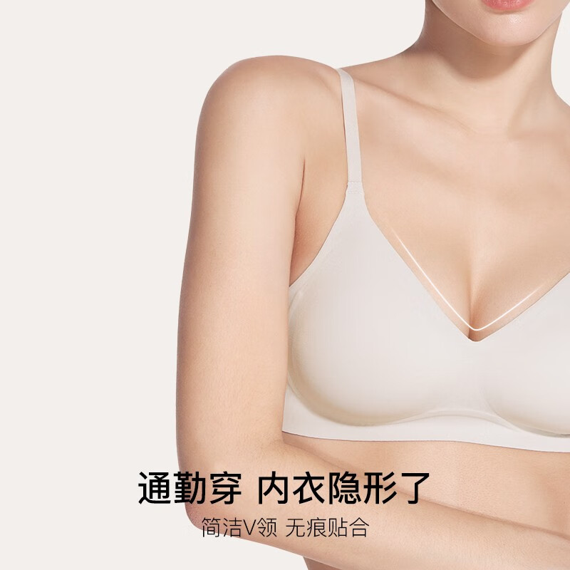 ubras[虞书欣同款]夹心软支撑光面小胸聚拢女无痕内衣隐形无钢圈文胸罩 【背勾款】燕麦奶色 M 75A/75B