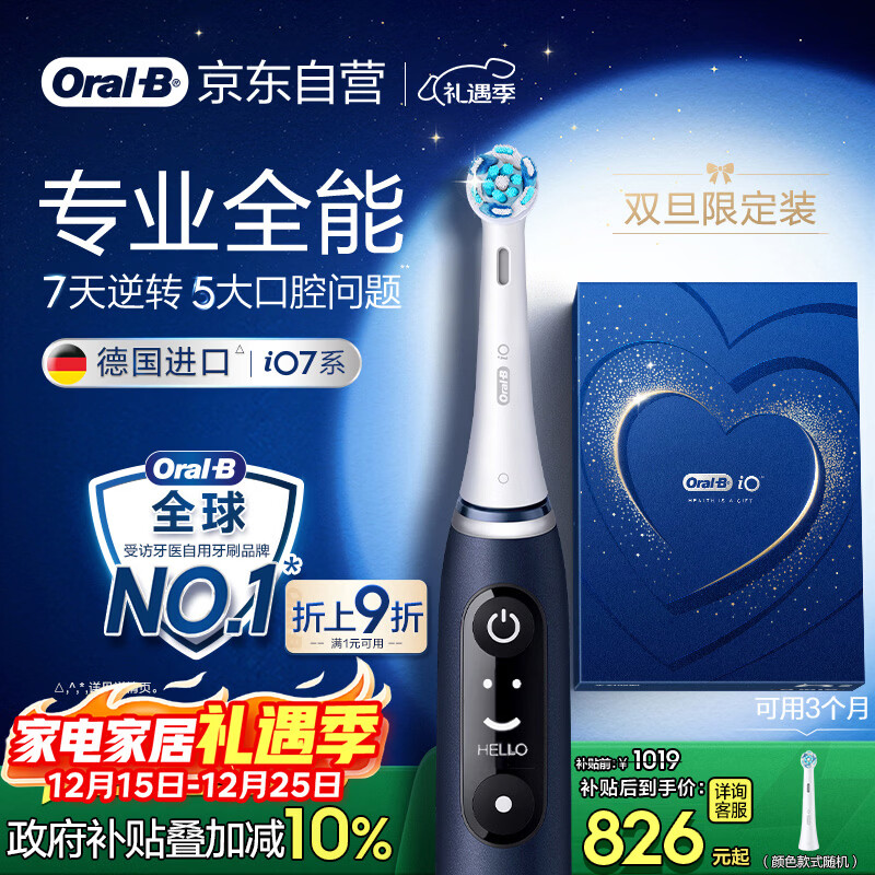 欧乐B电动牙刷iO7系海蓝宝石刷头*1深度清洁生日礼物商务伴手礼