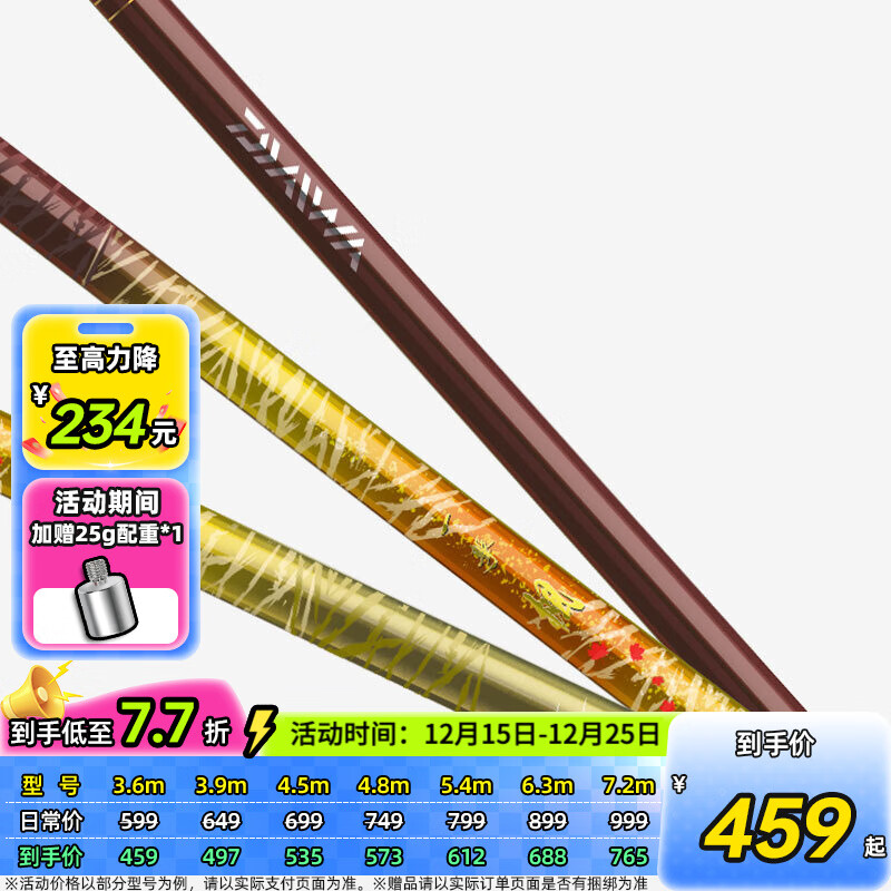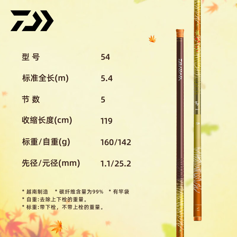 达亿瓦(DAIWA)一击枫 综合休闲竿超轻台钓竿超硬手杆进口钓鱼竿 5.4m FF 54