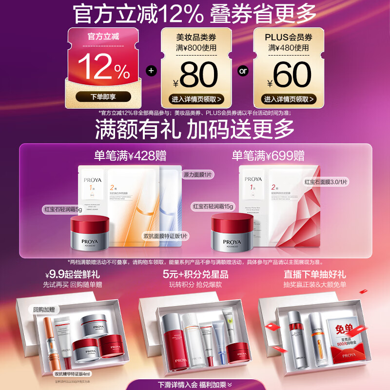 珀莱雅红宝石爽肤水乳液套装抗皱紧致护肤品套装护肤礼盒化妆品圣诞礼物