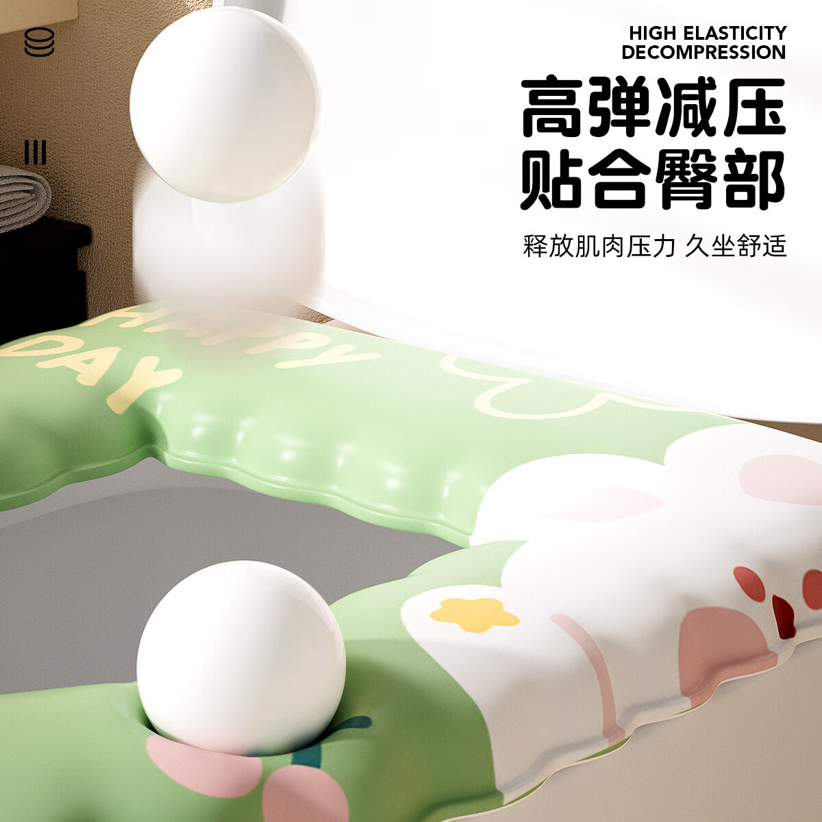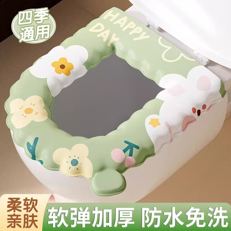 可爱马桶垫四季通用新款防水座圈坐便垫圈粘贴式冬季家用马桶坐垫 嫩芽绿【软弹亲肤柔软加厚】