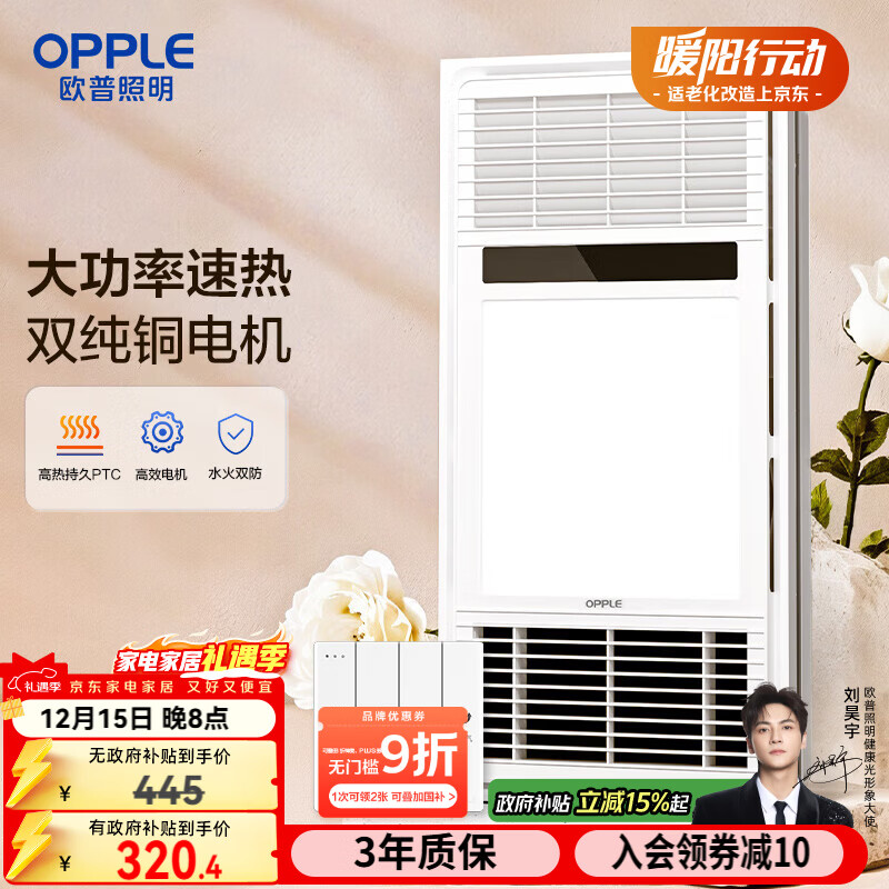 欧普(OPPLE)双纯铜电机风暖浴霸灯暖风照明排气一体集成吊顶卫生间浴室F165-E