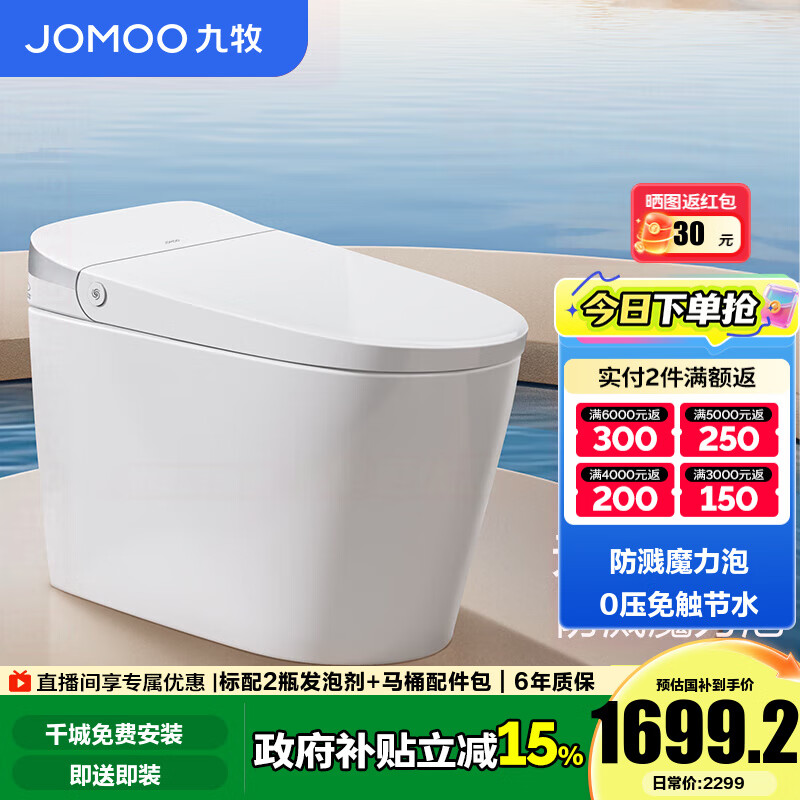九牧(JOMOO)轻智能马桶虹吸无水压限制魔力泡无棱易洁免触脚感抗菌坐便器6645 免触脚感魔力泡轻智能 坑距是290-390选 305mm