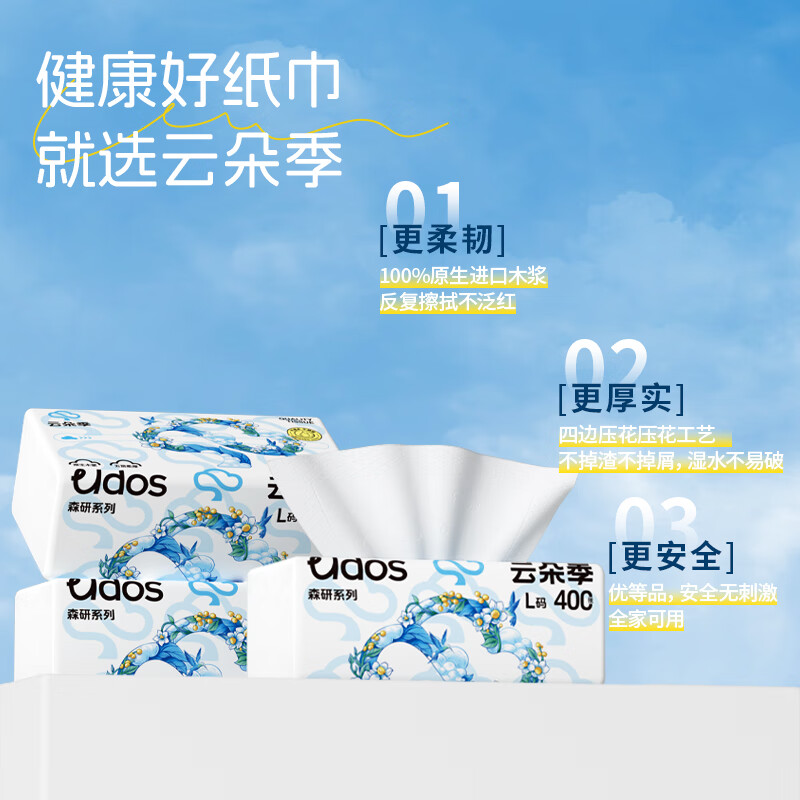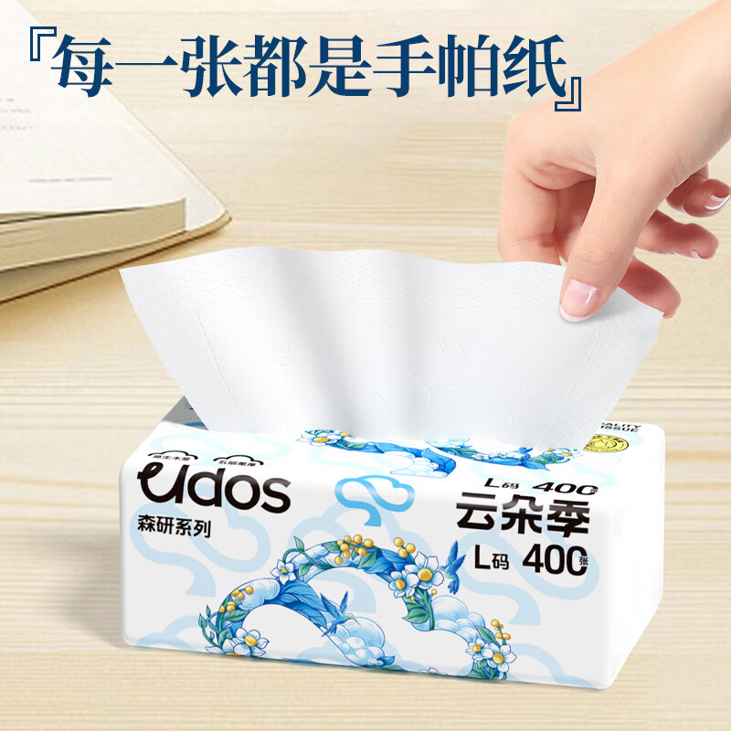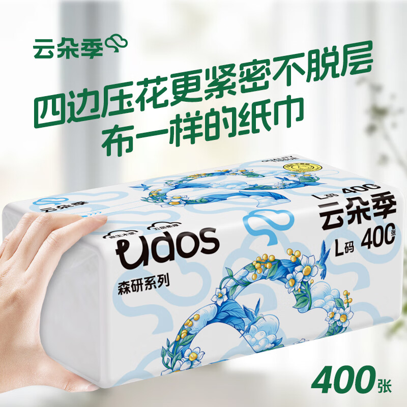 云朵季大号抽纸400张加量医护级纸巾家庭装优等品质大尺寸餐巾纸卫生纸 【L码】 5层 400张*20包
