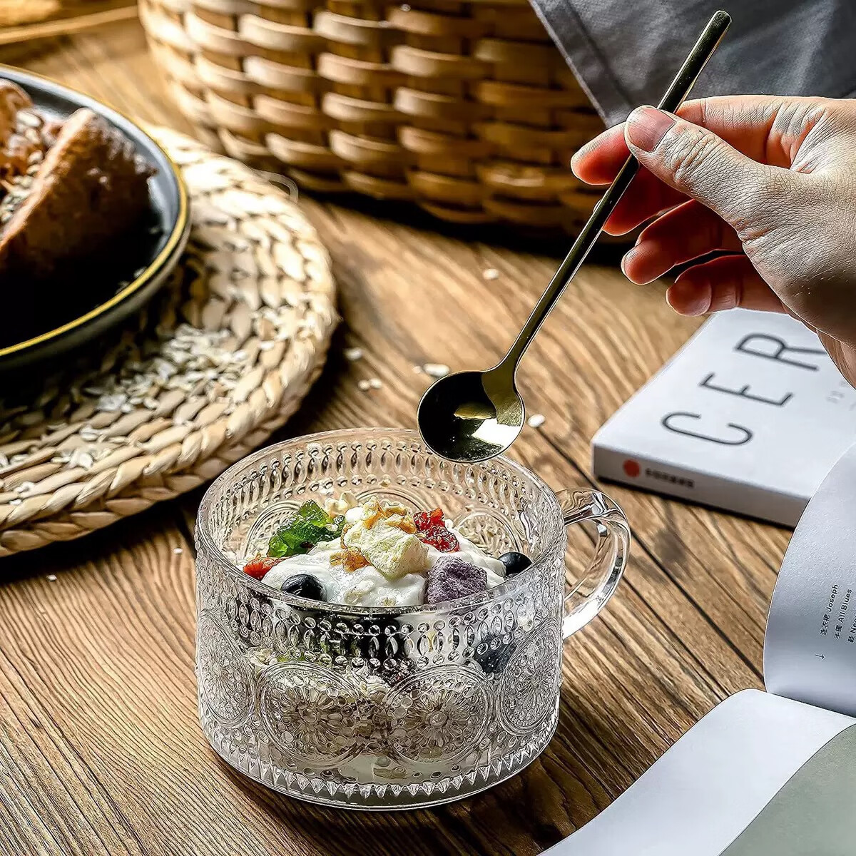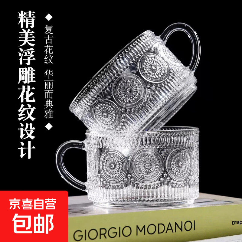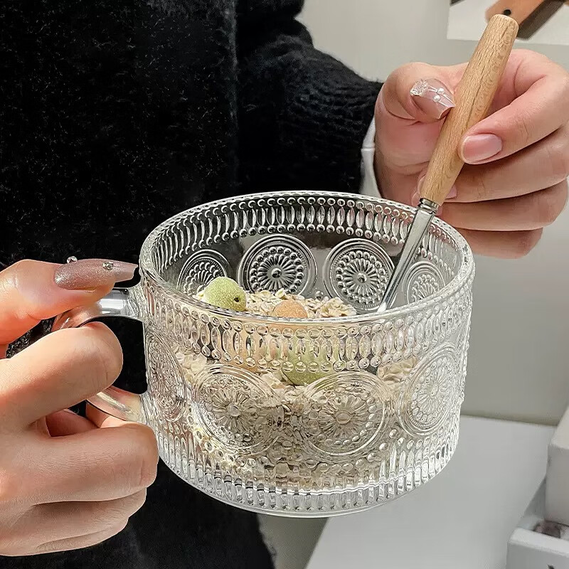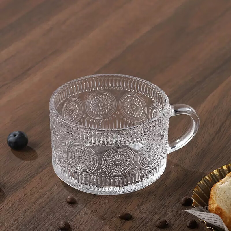 【京东物流】冰川纹玻璃杯时尚潮流ins风果汁杯酒杯水杯 太阳花早餐杯 400ml1只