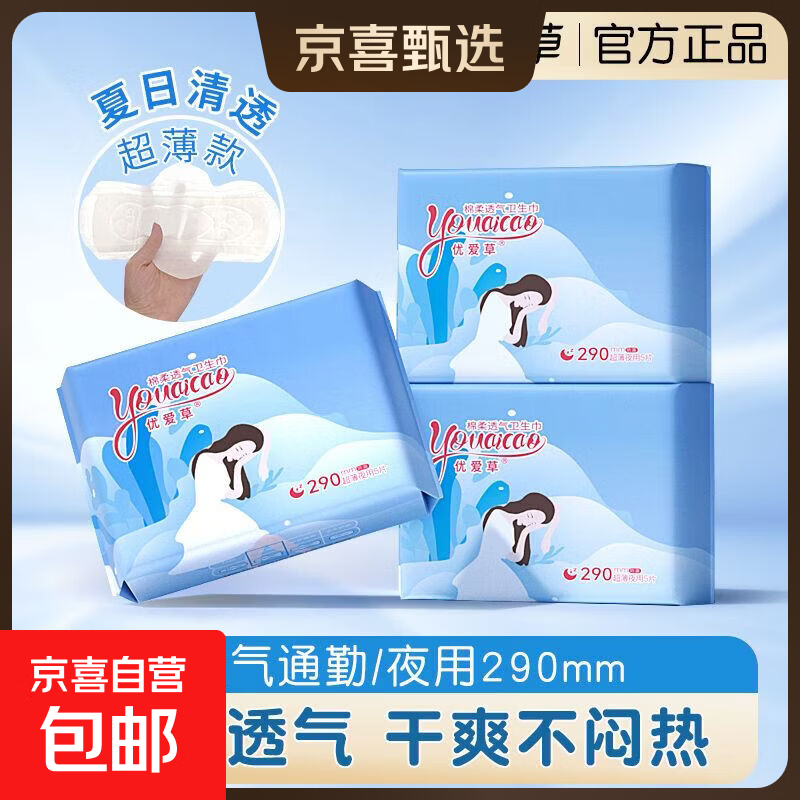【优爱草】医护级卫生巾日用加长夜用护垫组合透气自营38三八女神 棉柔 290mm 5片 夜用1包