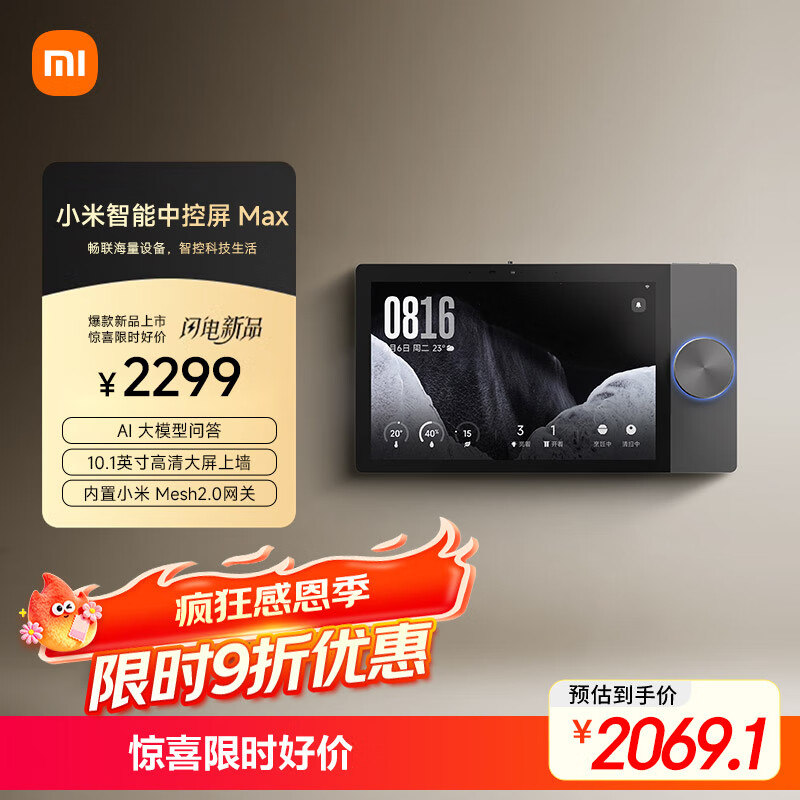 小米(MI)智能中控屏Max智能家庭面板触控屏小爱同学10.1英寸中控屏