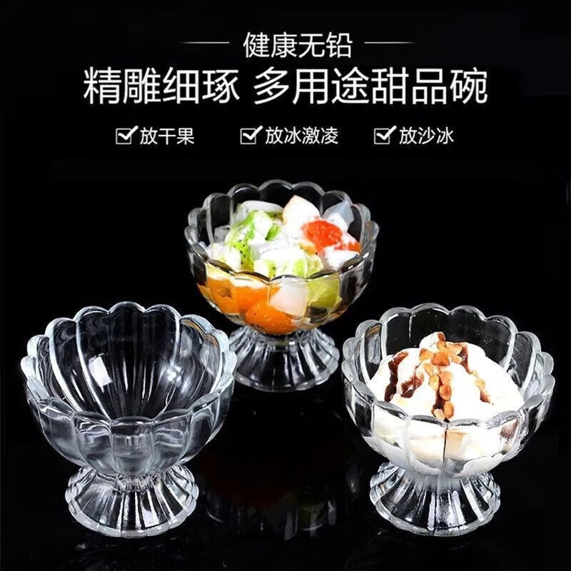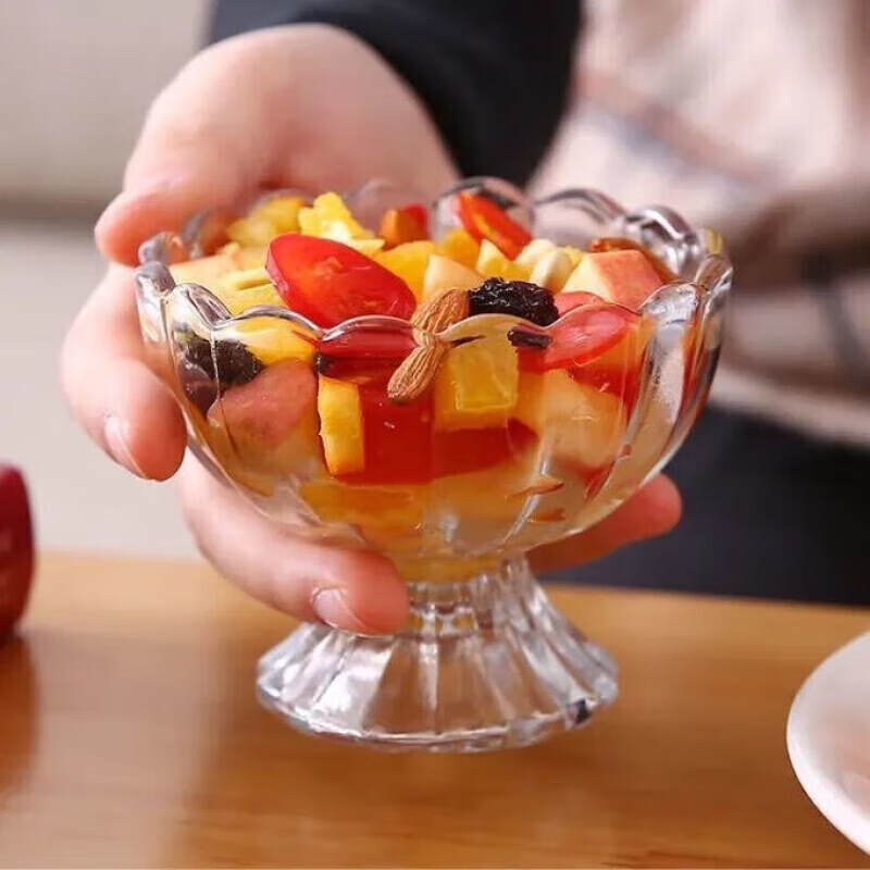 冰淇淋杯玻璃碗奶昔冷饮糕玻璃容器花边玻璃杯水果汁奶茶甜品杯 1个装