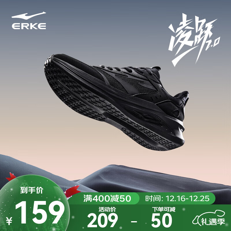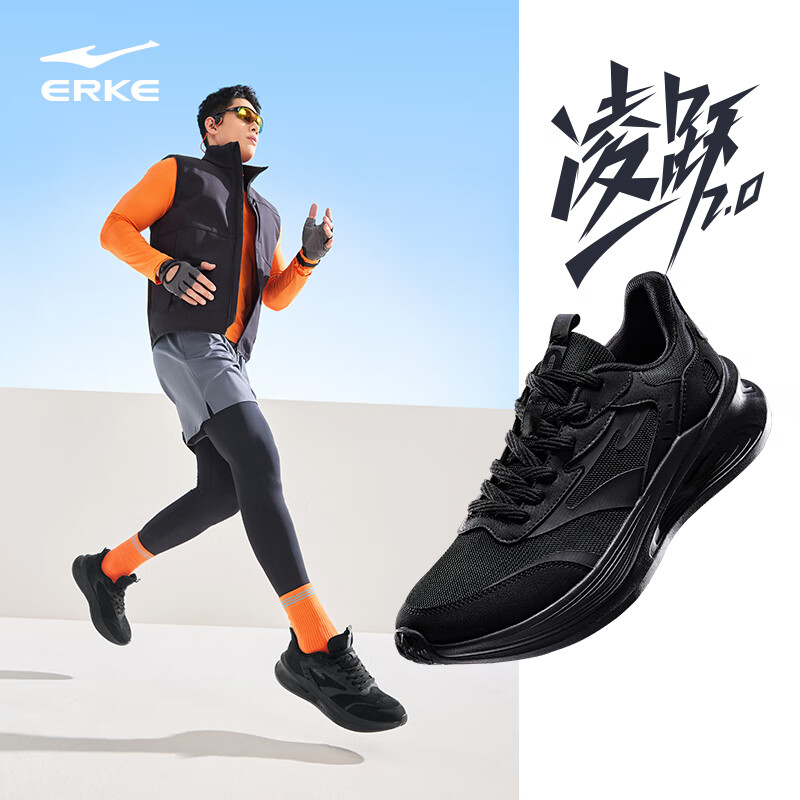鸿星尔克男鞋凌跃2跑鞋秋冬季新款软底减震跑步鞋保暖轻便黑色运动鞋子男 【热卖推荐款】正黑 42