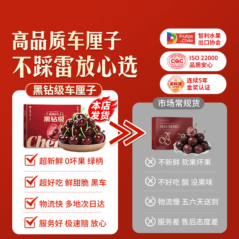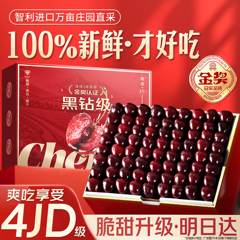 山姆伯伯 智利车厘子4J级【多地次日达】车厘子樱桃水果礼盒年货送礼 2斤(净重) 【划算】2人专属分享 4J级 黑钻果王 32mm+ 【品质升级-奢享体验】